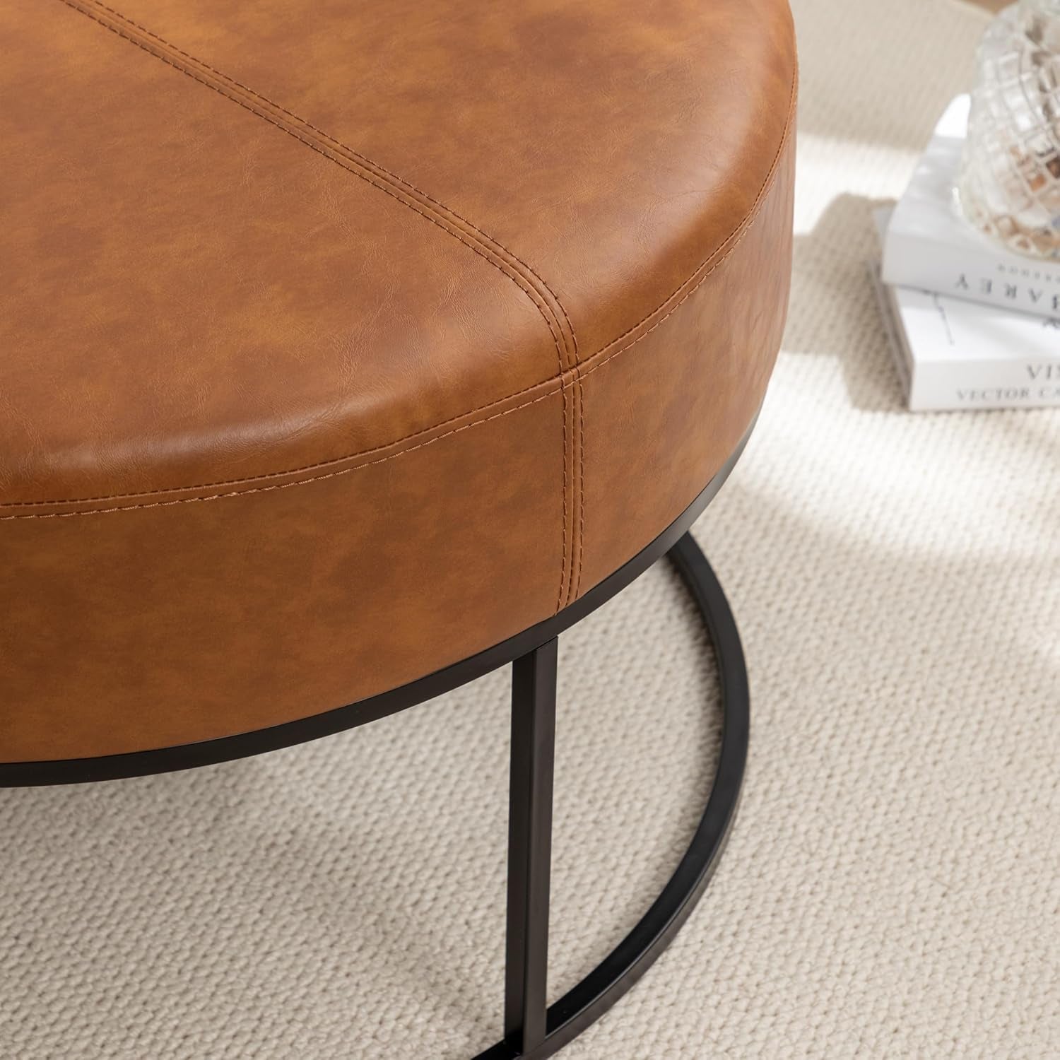 Embrace a lifestyle of relaxed gatherings and refined style. The round form, sophisticated leatherette finish, and sturdy frame invite conversations, elevate décor, and make everyday moments feel a little more special.