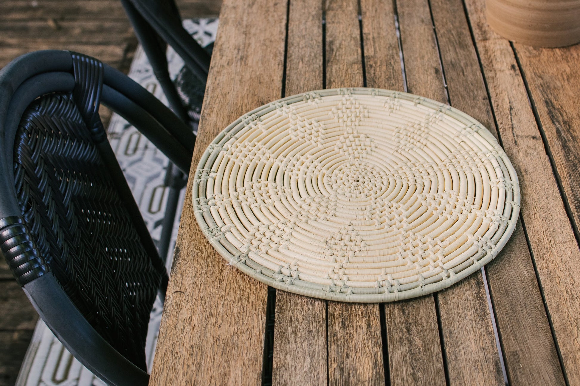 We LOVE the sage blocking around the edge of these beauties. They go perfectly as placemats with our woven napkin rings and cotton napkins. Or they are perfect trivets to hold your pots and dishes. Our hope is that they bring beauty to a table that hosts beautiful conversations!