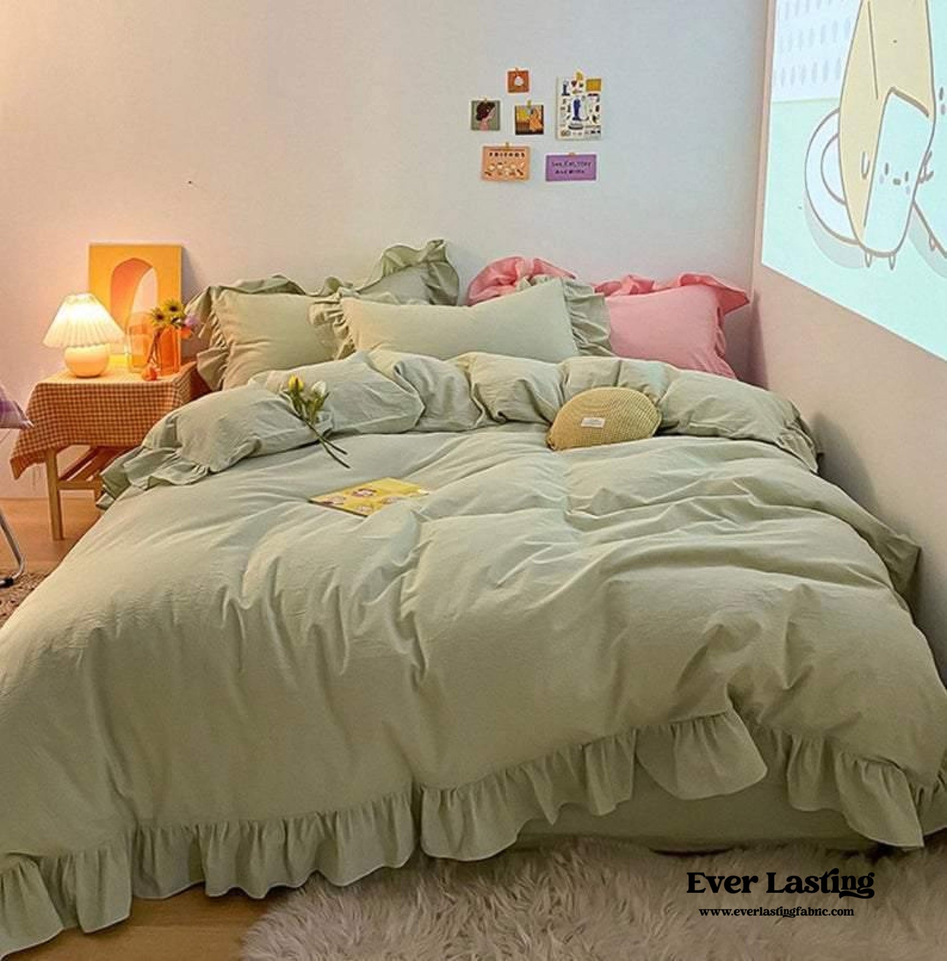 Ruffle Bedding Set / Green