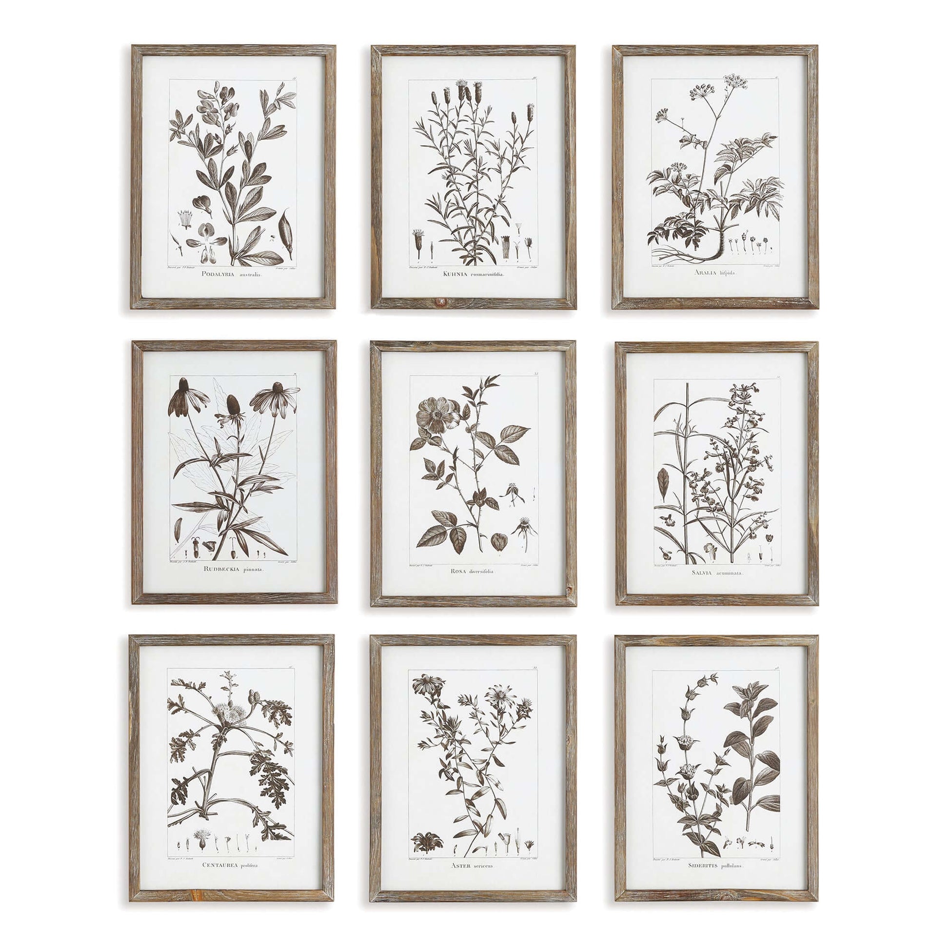 Rustic Botanical Sepia Wall Art Prints (Set of 9)