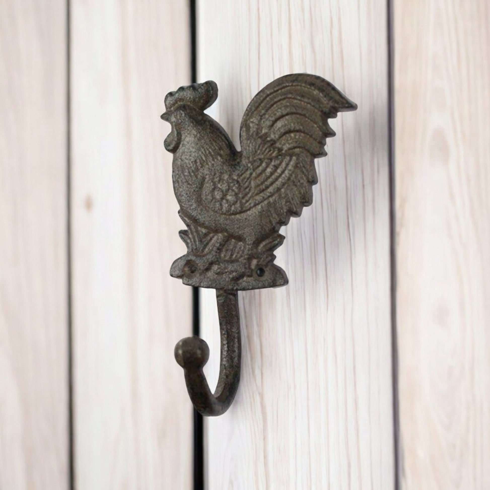 Rustic Cast Iron Rooster Hook, Farmhouse Wall Organizer