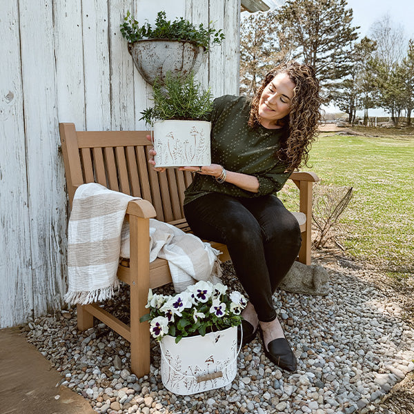 Say hello to your new favorite storage sidekicks! These embossed metal buckets are giving total garden goddess vibes with their embossed mushroom details—seriously, how cute are they?! And those wood handles? Chef’s kiss cottage-core perfection.