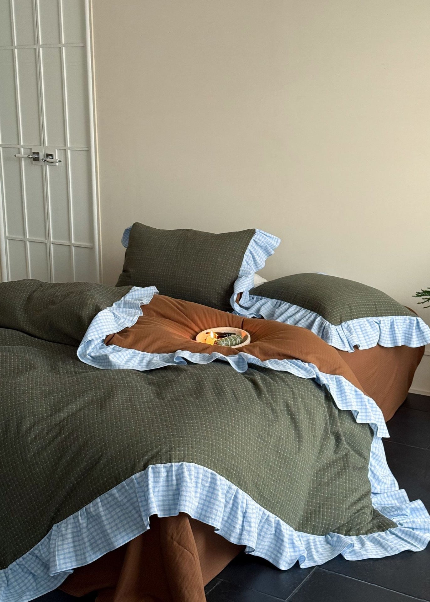 Comforter/Duvet insert and pillows are not included. Shop Plant Based Duvet Insert. Shop Plant Based Pillow. Looking for a full set with duvet insert and pillows? Shop Sadie Gingham Lace Ruffle Bedding Bundle.