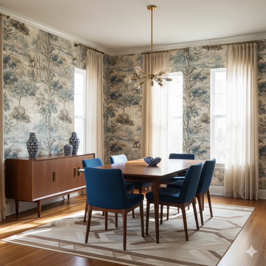 Wallpaper pattern is 24" x 24" repeat.