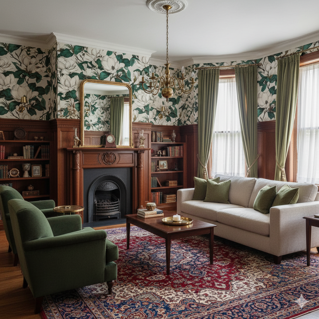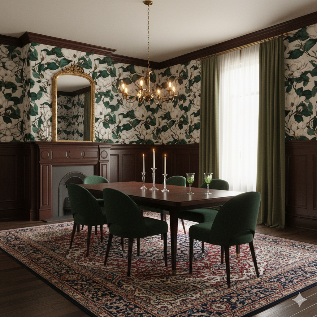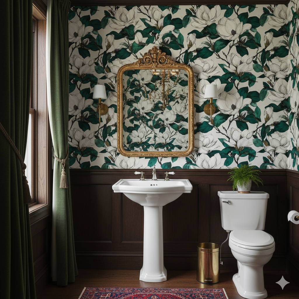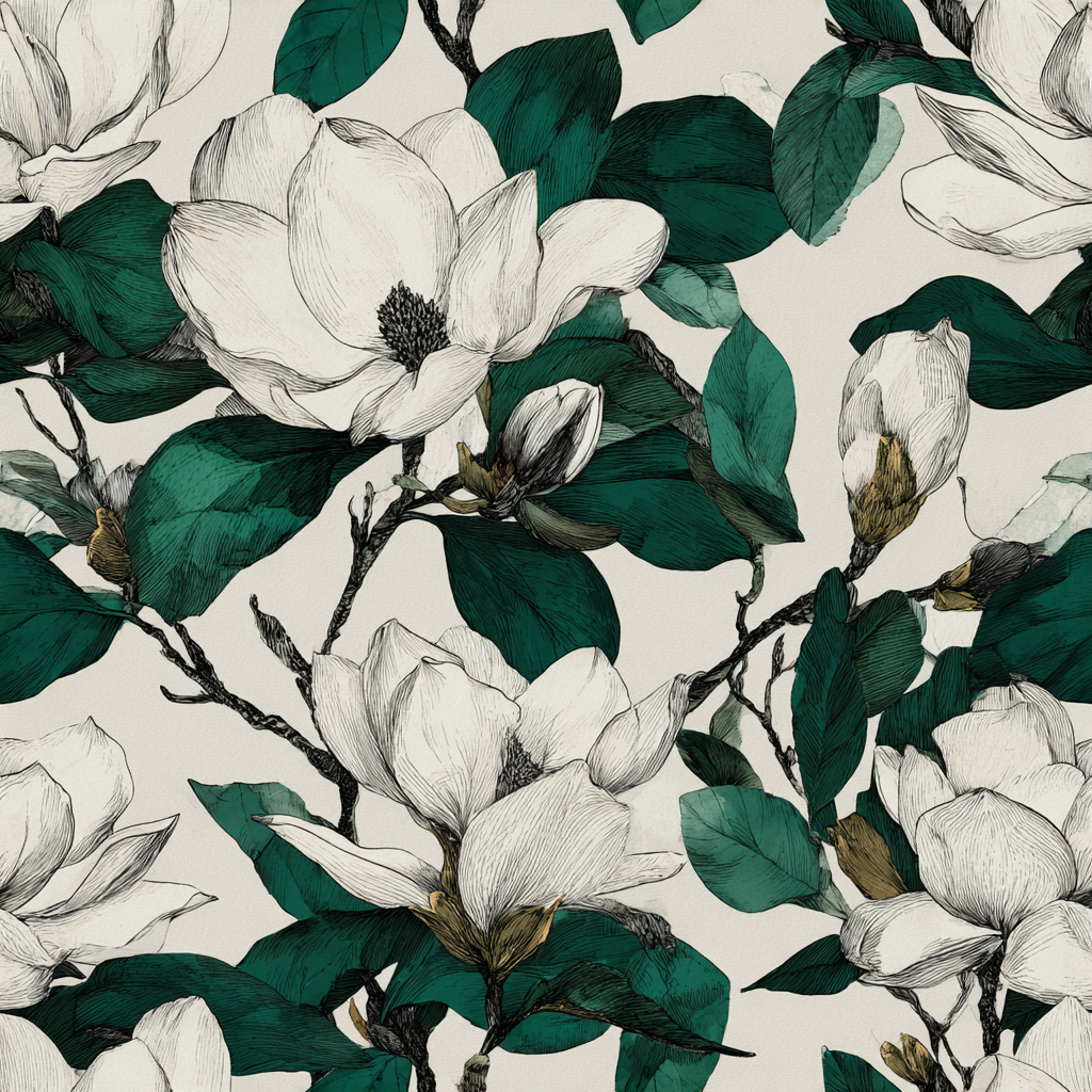 This large-scale magnolia floral wallpaper evokes the timeless elegance of Southern gardens. The hand-illustrated blossoms unfurl in creamy white petals, their subtle shading giving depth and dimension against a warm neutral backdrop. Rich, deep green foliage balances the composition, creating a sense of lush abundance and sophistication. The contrast between the delicate blooms and bold leaves makes the design feel both classic and contemporary, bridging heritage style with modern sensibilities. Perfect for a dining room with dark wood furniture, a bedroom that leans into vintage romantic charm, or even an upscale boutique hotel lobby, this print elevates spaces with an air of refinement. It’s especially suited for those drawn to botanicals but seeking something with more artistry and structure than typical florals.