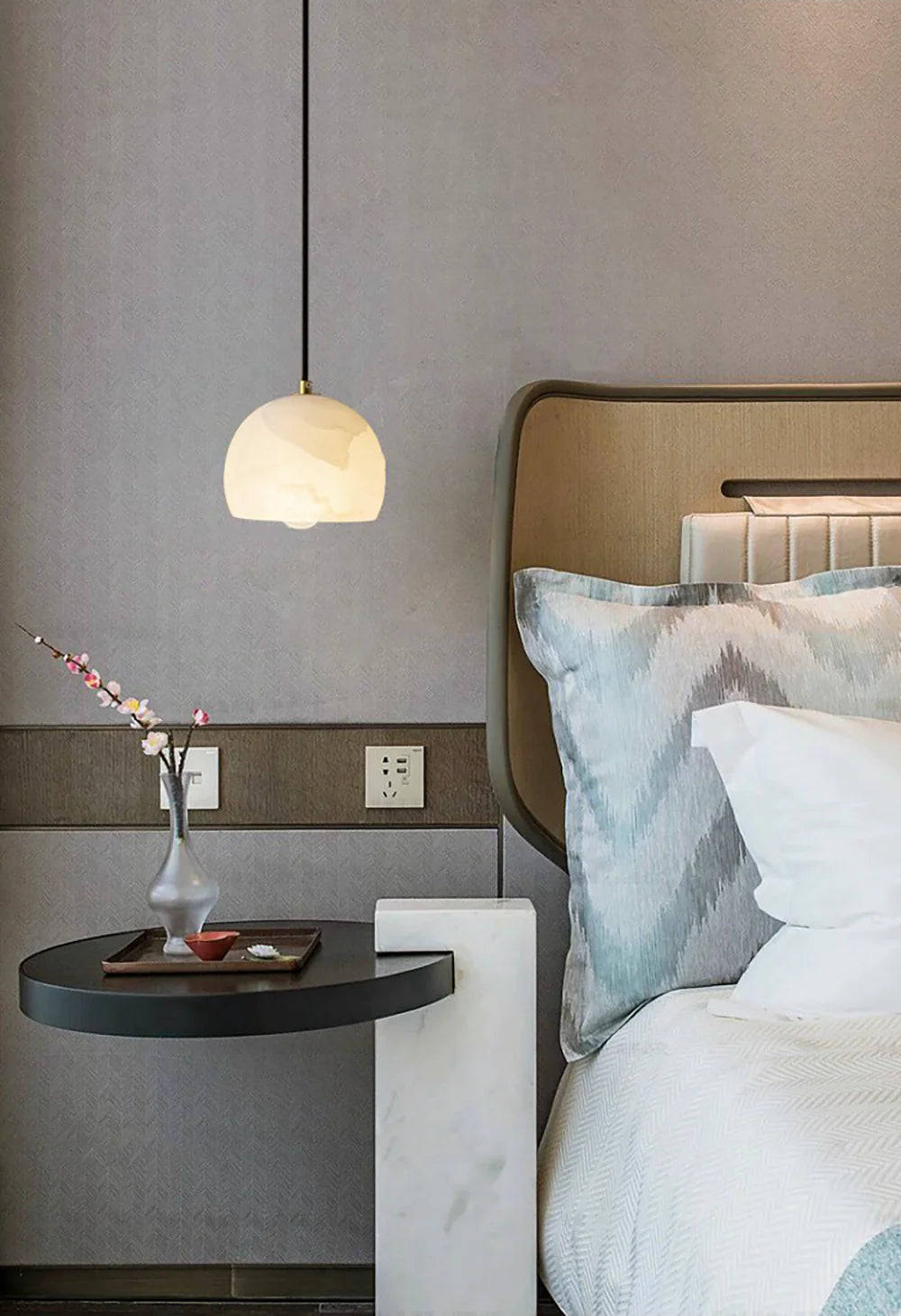 Transform your space with the Semicircular Alabaster Pendant Light - a breathtaking addition that exudes elegance and sophistication. The alabaster shade emits a warm, soft glow, creating the perfect ambience for your living room, dining room, or bedroom. Elevate your interior with this stunning lighting fixture.