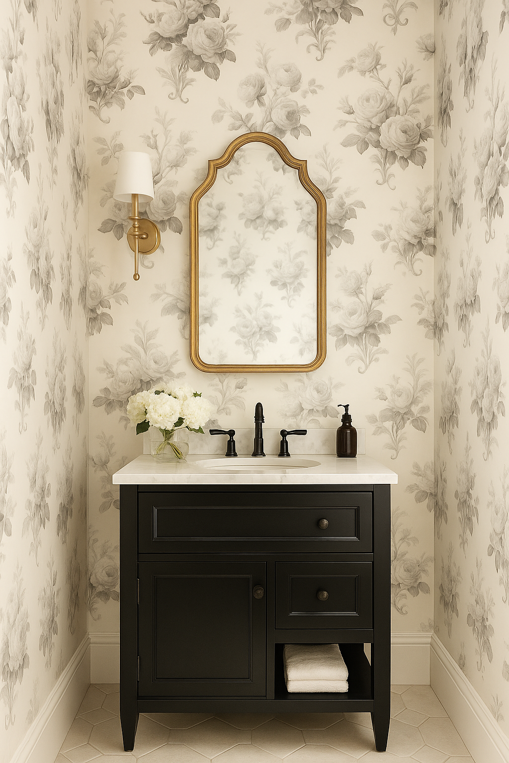 Clusters of painterly roses in soft sepia tones curl across an ivory background in Sepia Bloom. The petals are shaded with care, offering a romantic vintage elegance. This design suits a Parisian powder room, antique-inspired bedroom, or chic boutique looking for something soft, sweet, and timeless.
