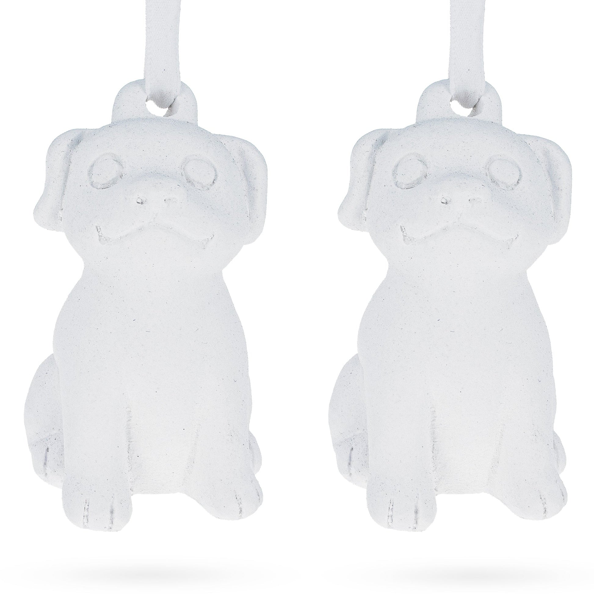 Set of 2 Blank Unfinished White Plaster Dog Christmas Ornaments DIY Craft 3.25 Inches