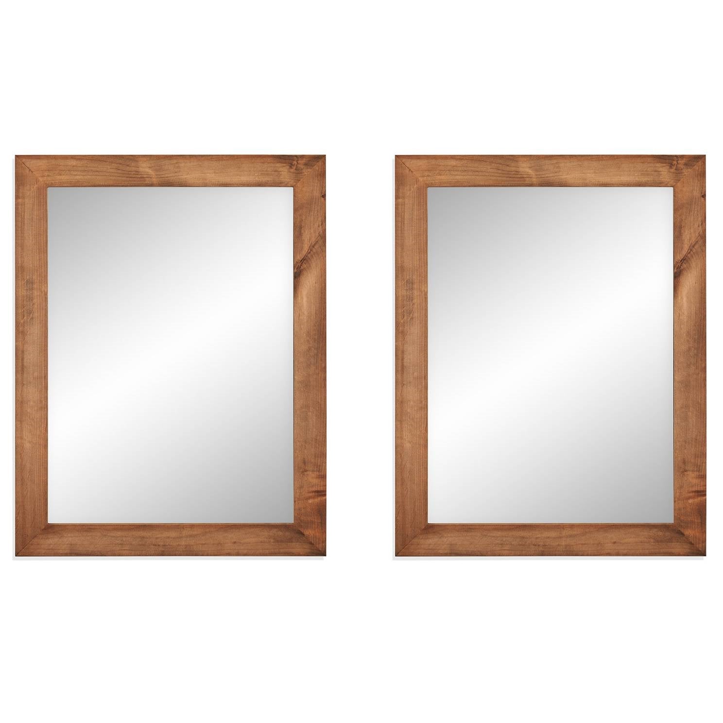 Set of 2 Modern Farmhouse Mirror Set Distressed Brown Wood Frame 31 x 24 inch