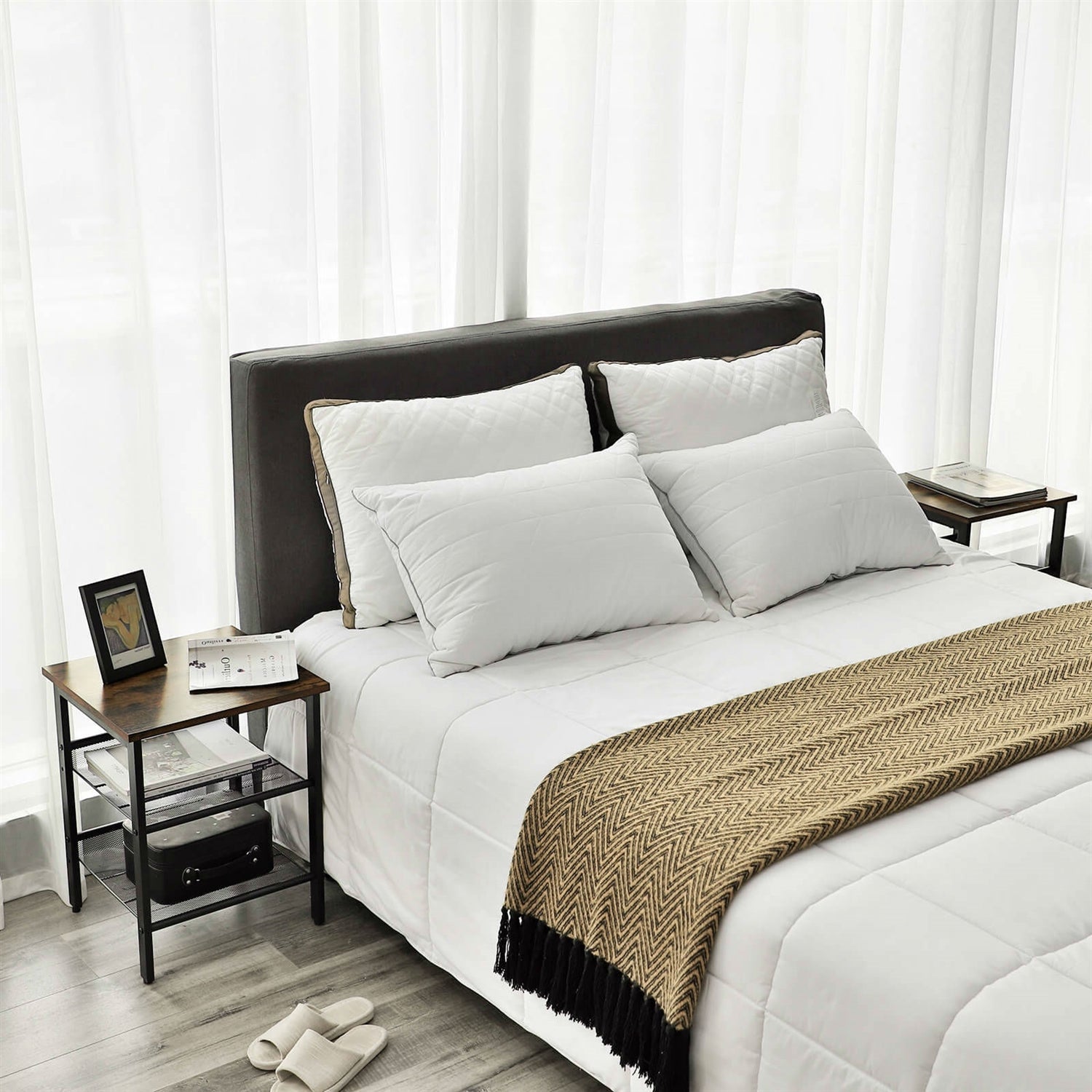 - Thanks to the simple structure of the bedside tables, our detailed instructions and the included Allen key, you don't need to have an engineering degree to assemble this set of 2 side tables