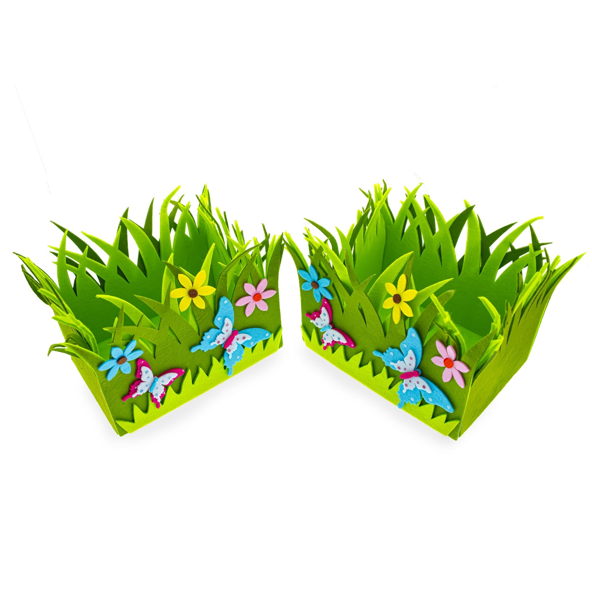 Set of 2 Spring Flowers and Butterflies Easter Felt Decorative Centerpiece