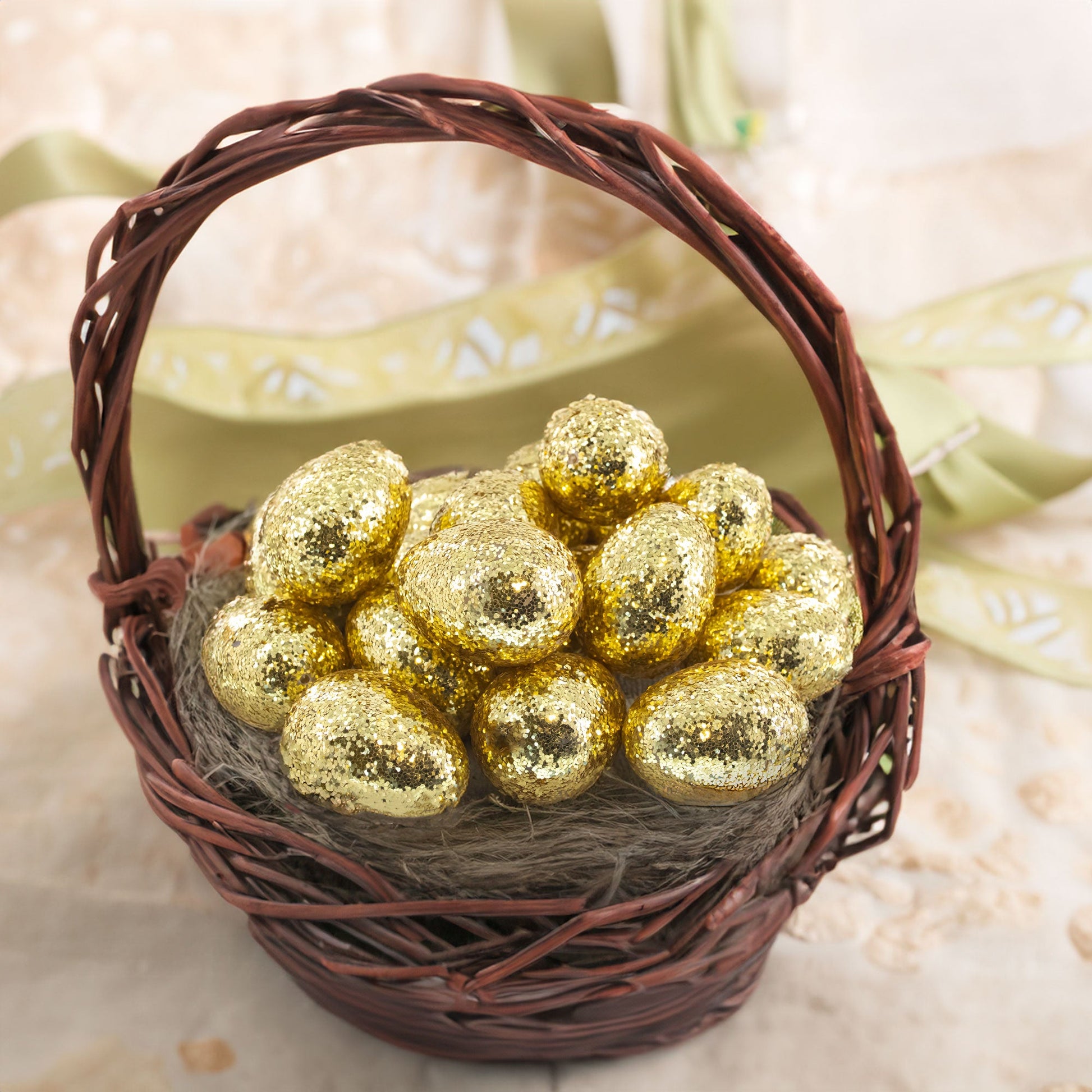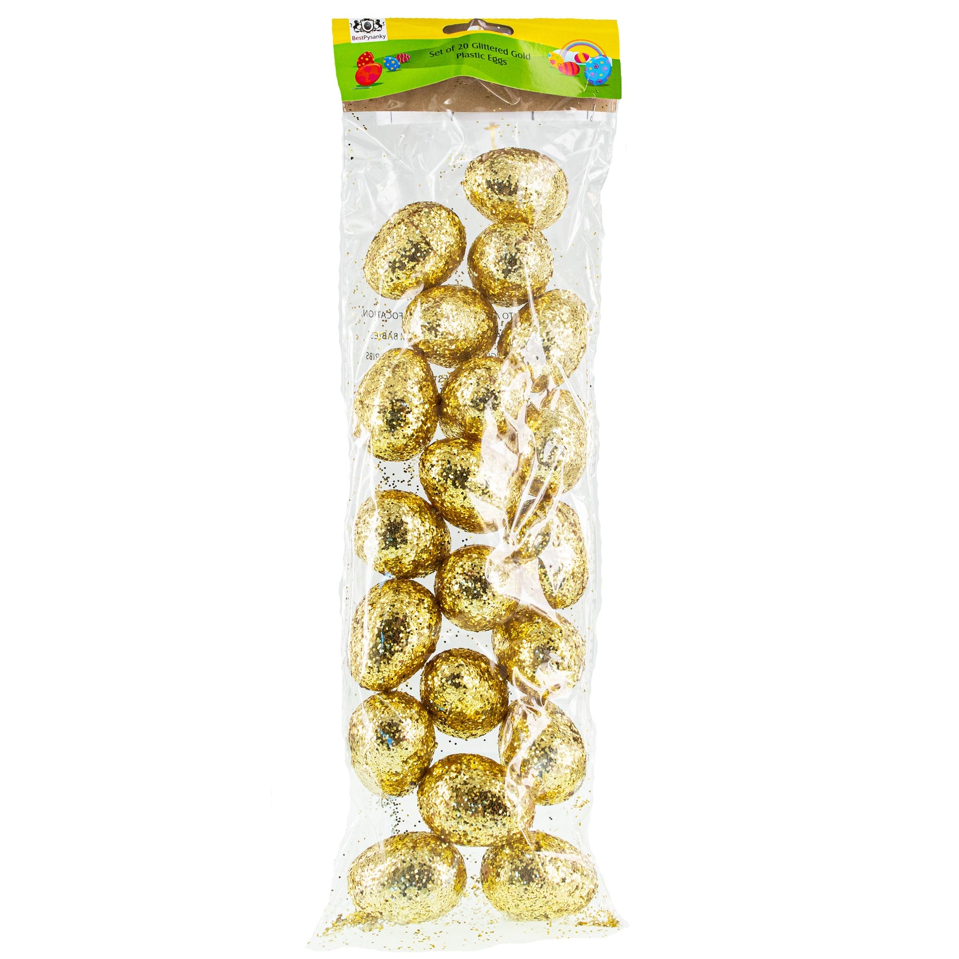 Set of 20 Gold Glittered Fillable Plastic Easter Eggs 2.25 Inches