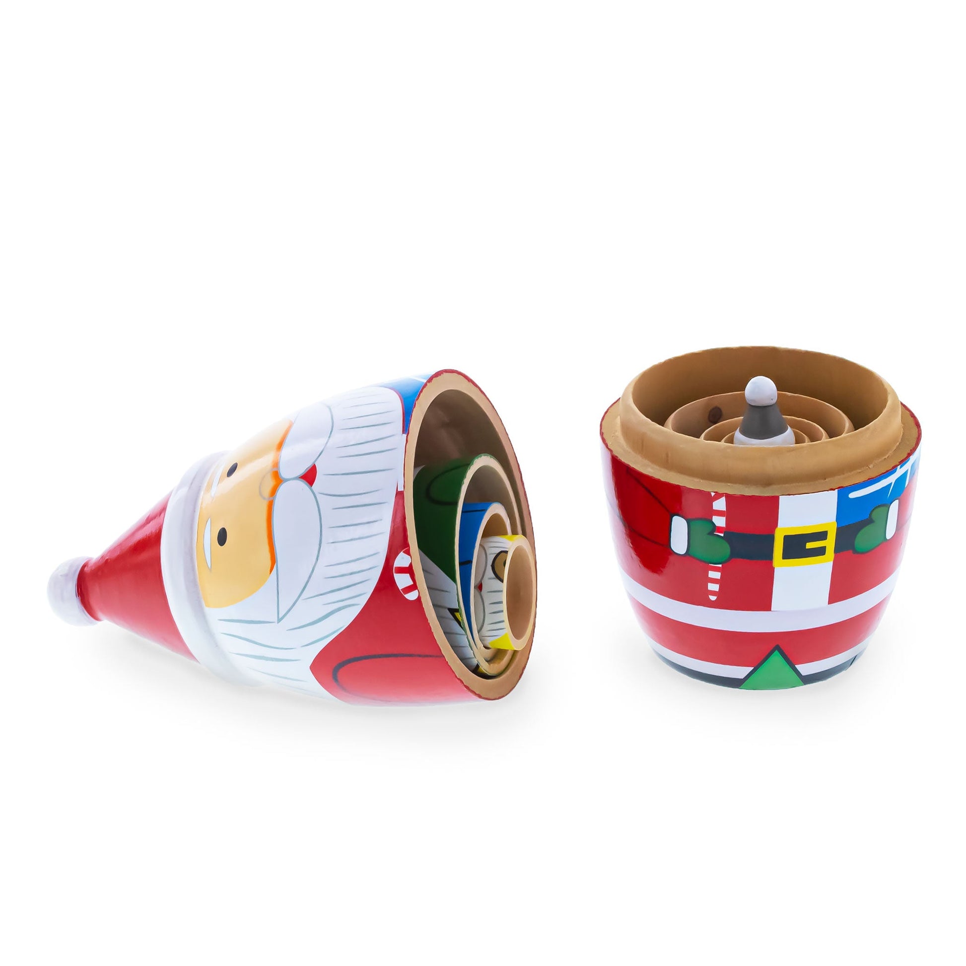 Set of 5 Multicolor Santa with Christmas Gifts Wooden Nesting Dolls 5.5 Inches