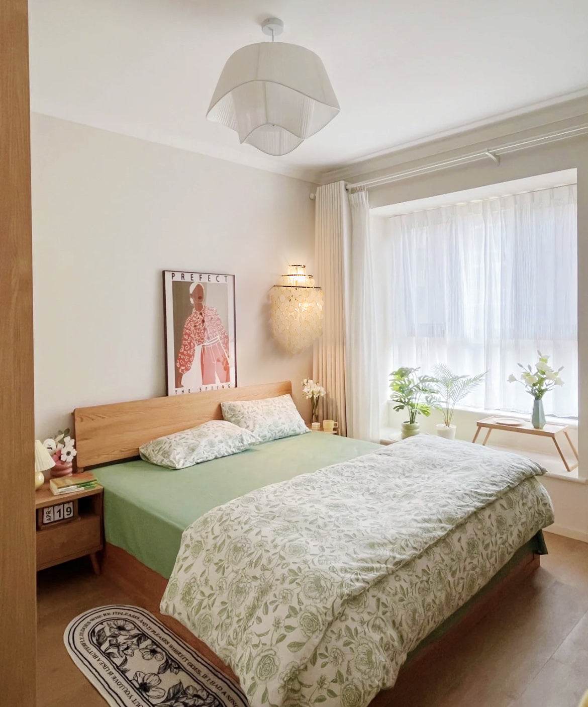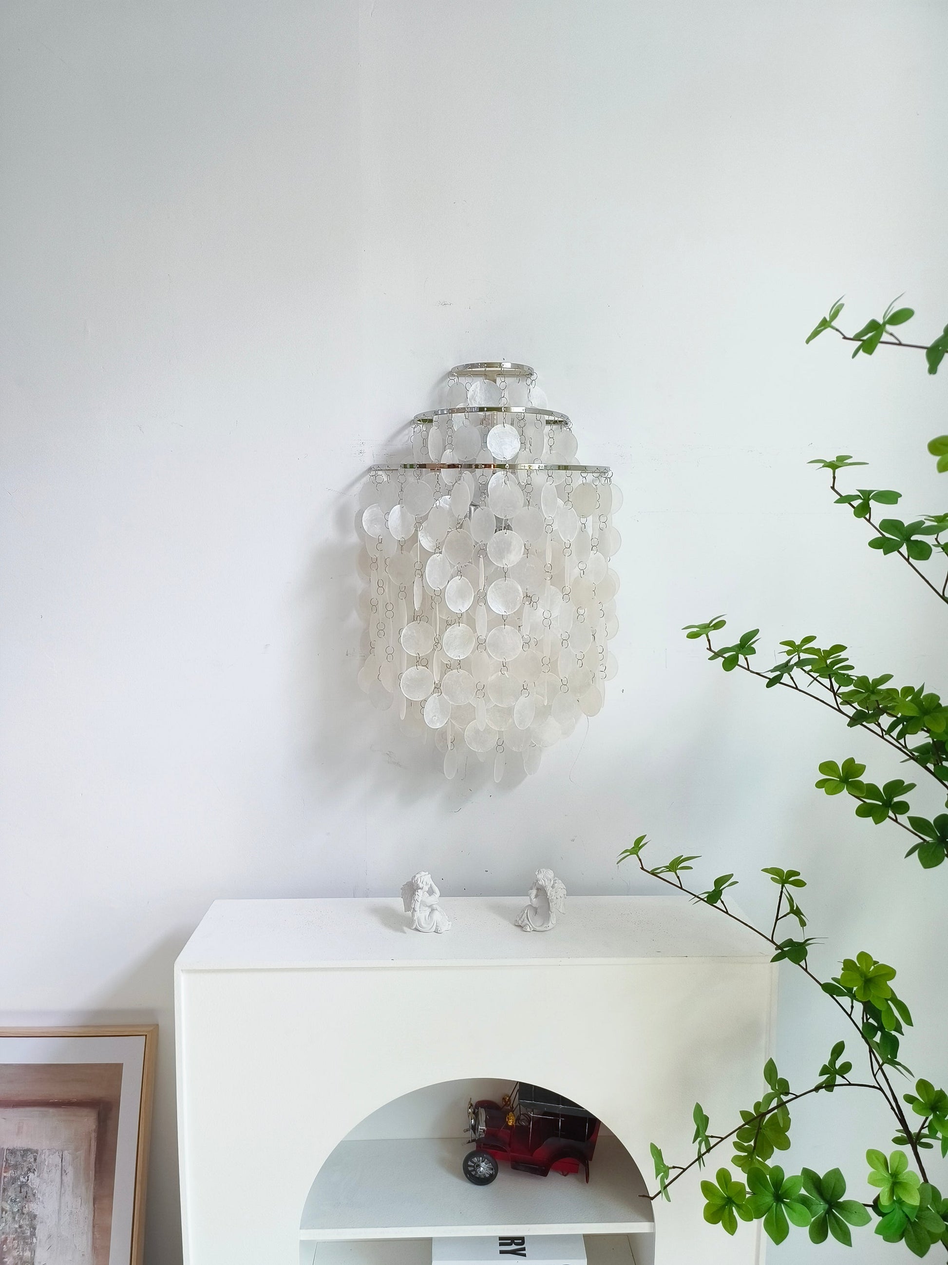 The original ecological imported shell lampshade exudes a gentle halo under the light after the light is turned on