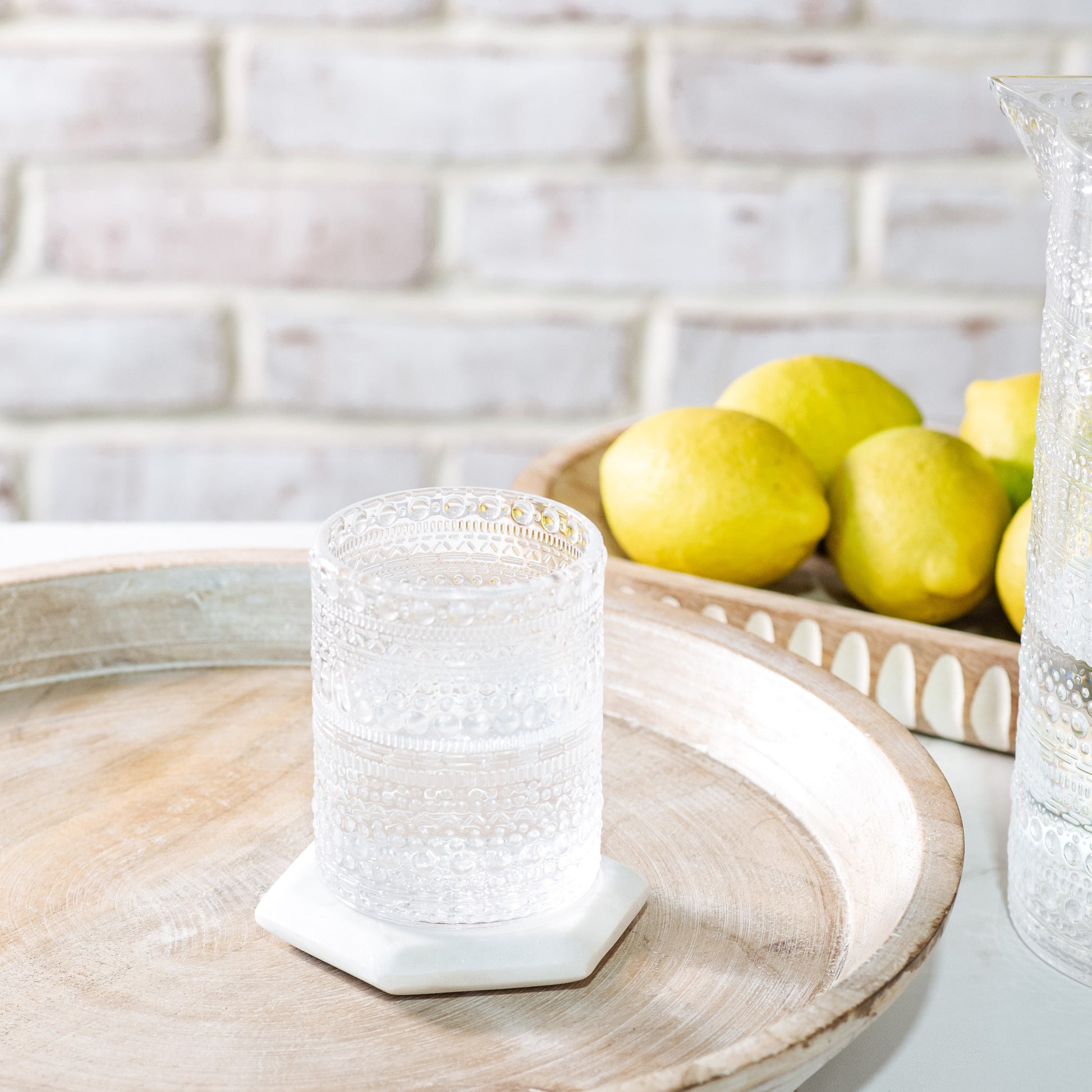 With a detailed embossed dot pattern and crystal-clear finish, this 4" melamine tumbler brings texture and style to any sip. Made to resemble pressed glass but crafted from sturdy melamine, it offers the beauty of delicate drinkware with everyday durability. Perfect for patio gatherings, kids' tables, or adding charm to your drink station—without worrying about chips or breaks.