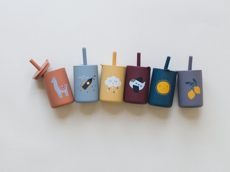 Silicone cup and straw lid for babies & toddlers. Straw is removable for easy washing.