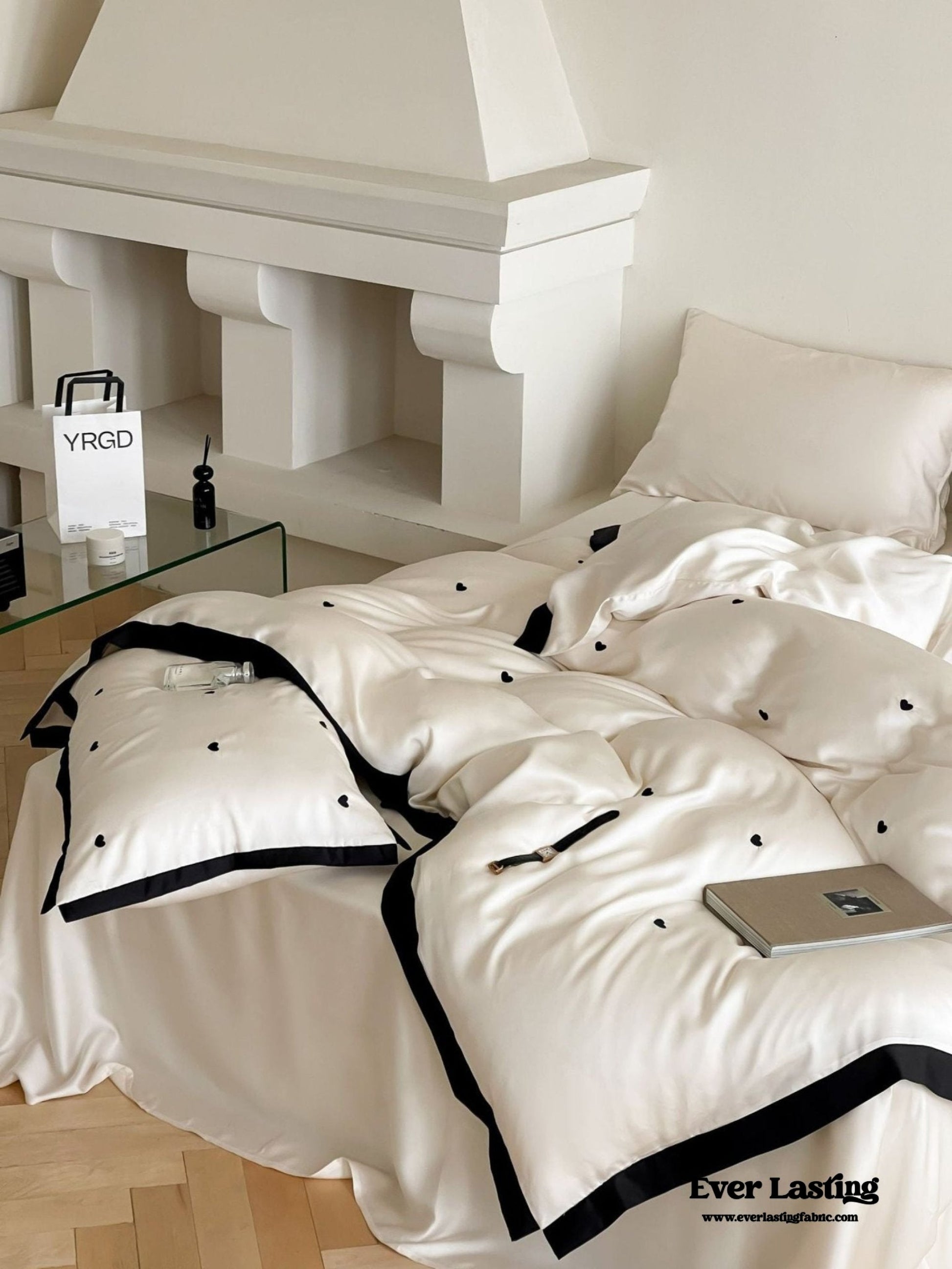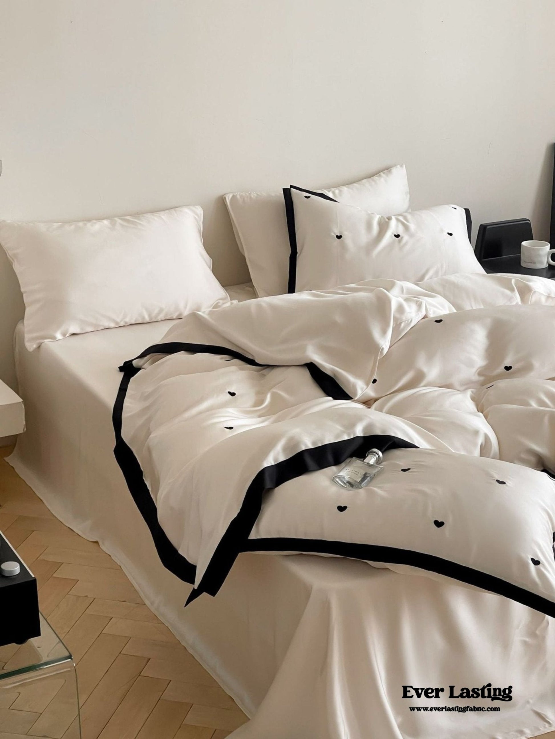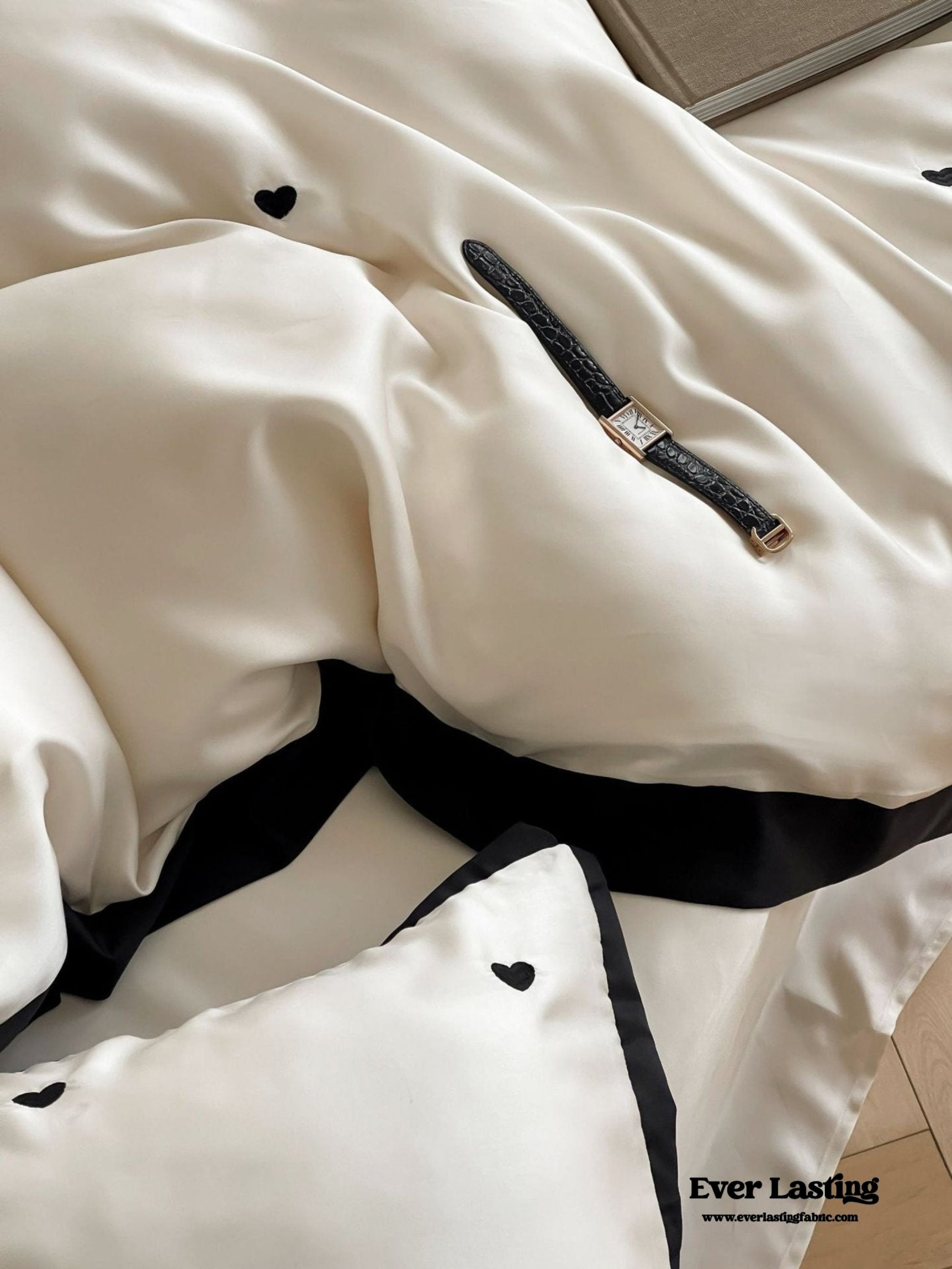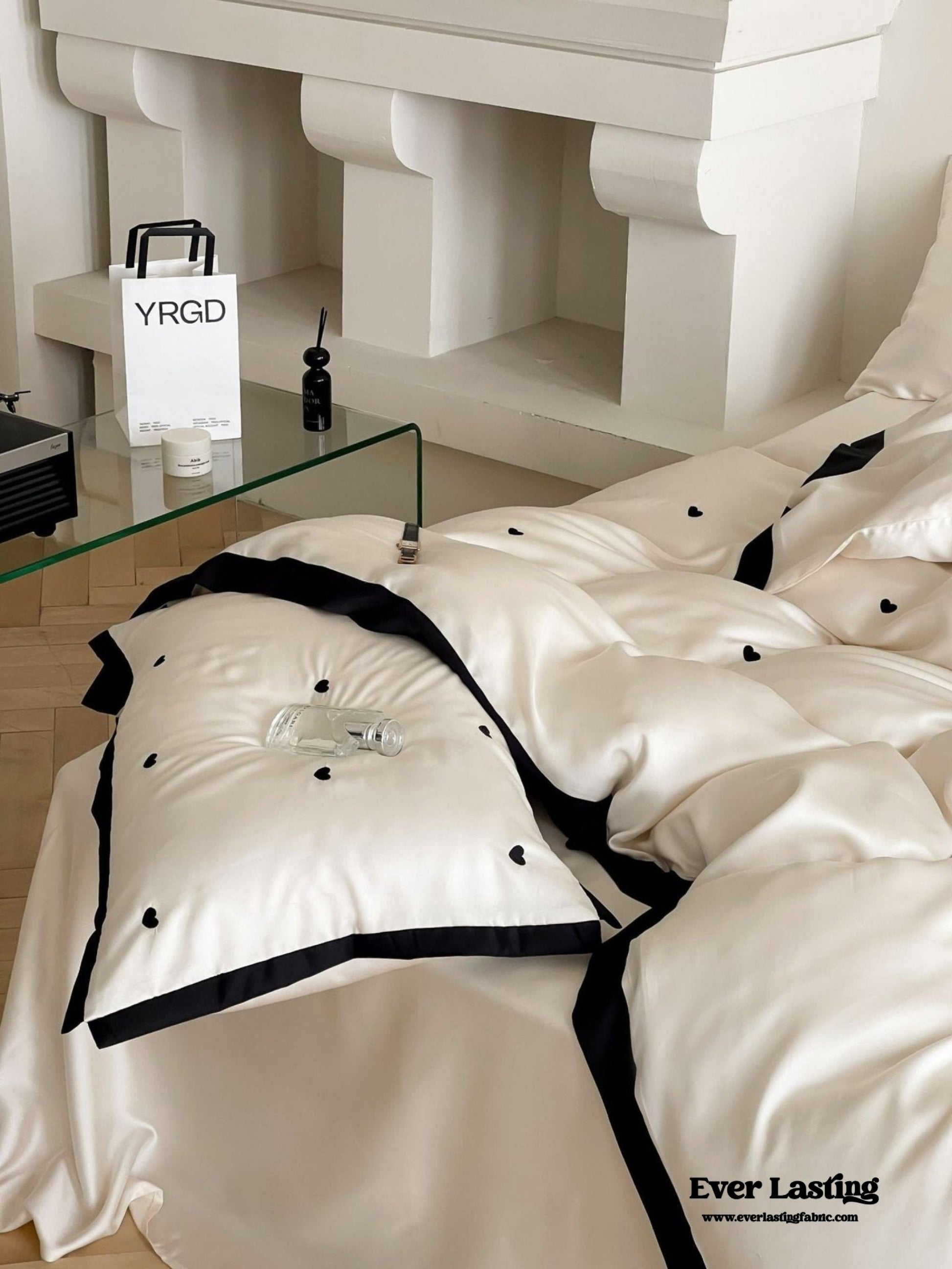 Introducing our Silky Black Heart White Bedding Set, where sophistication meets romance in a stunning monochrome symphony. Immerse yourself in the luxurious embrace of silky black fabric adorned with delicate white heart patterns, creating a timeless blend of elegance and love. This bedding set is a visual poetry that transforms your bedroom into a sanctuary of style and comfort. Each duvet cover is thoughtfully equipped with four corner ties and a hidden zipper, ensuring your duvet insert stays securely in place throughout the night. Elevate your sleep sanctuary with this exquisite ensemble that harmoniously blends silky textures, monochrome elegance, and a hint of romantic whimsy.