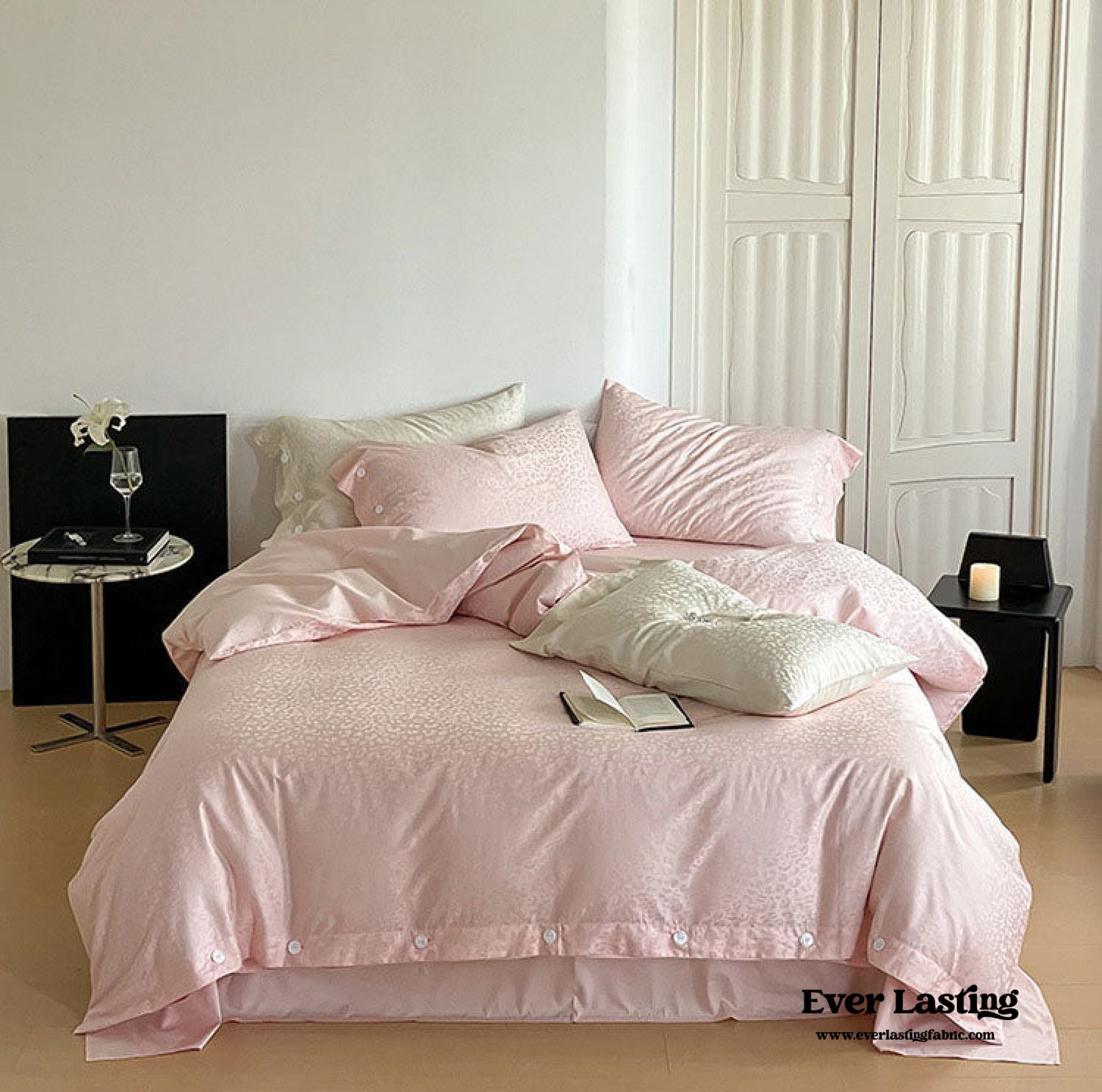 Silky Leopard Buttoned Bedding Set / Baby Pink