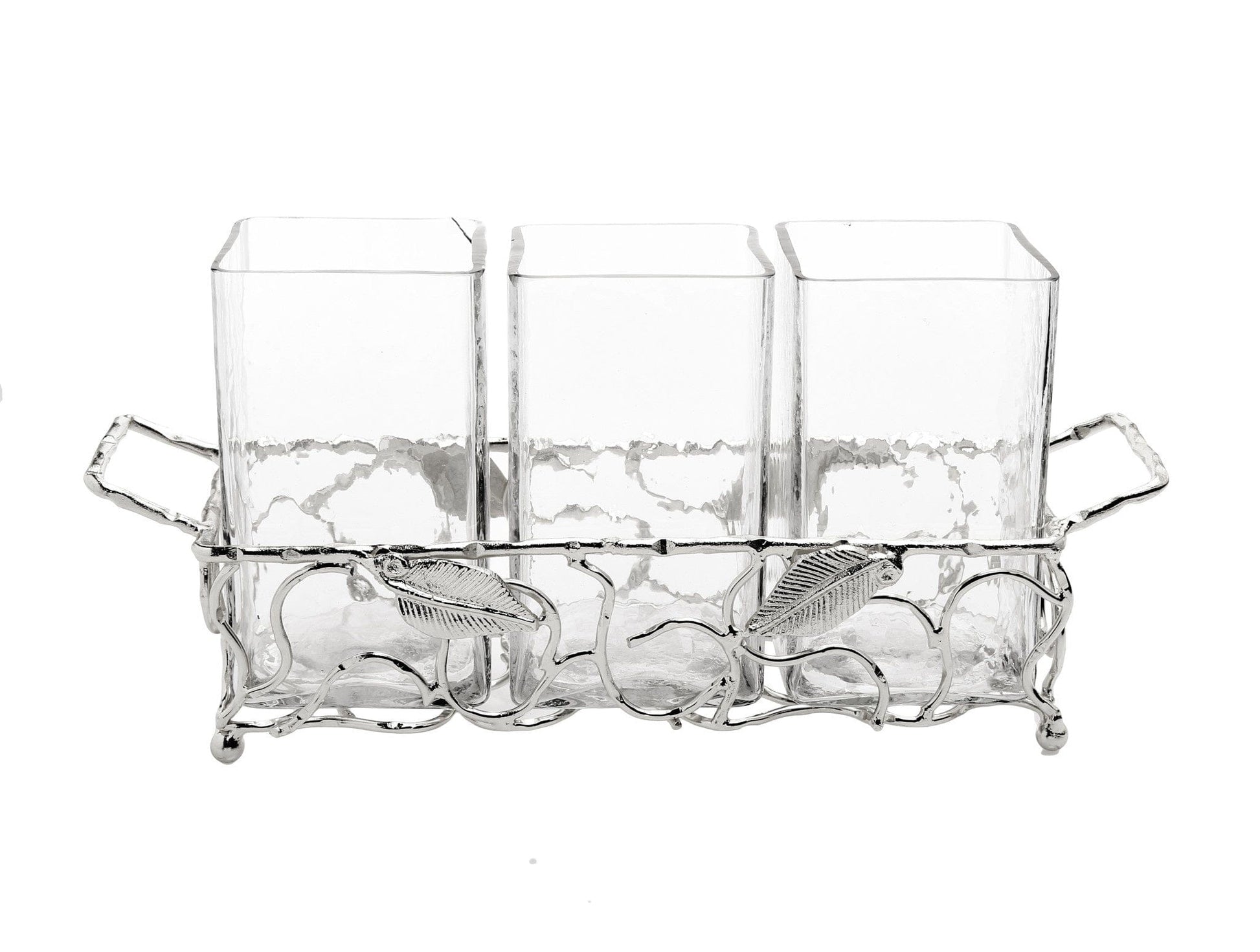 Silver Leaf Cutlery Holder with Hammered Glass Inserts