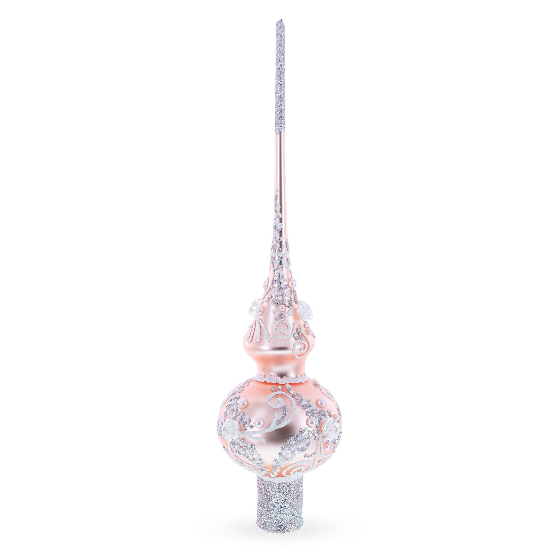 Silver Swirls on Metallic Rose Pink Glass Tree Topper