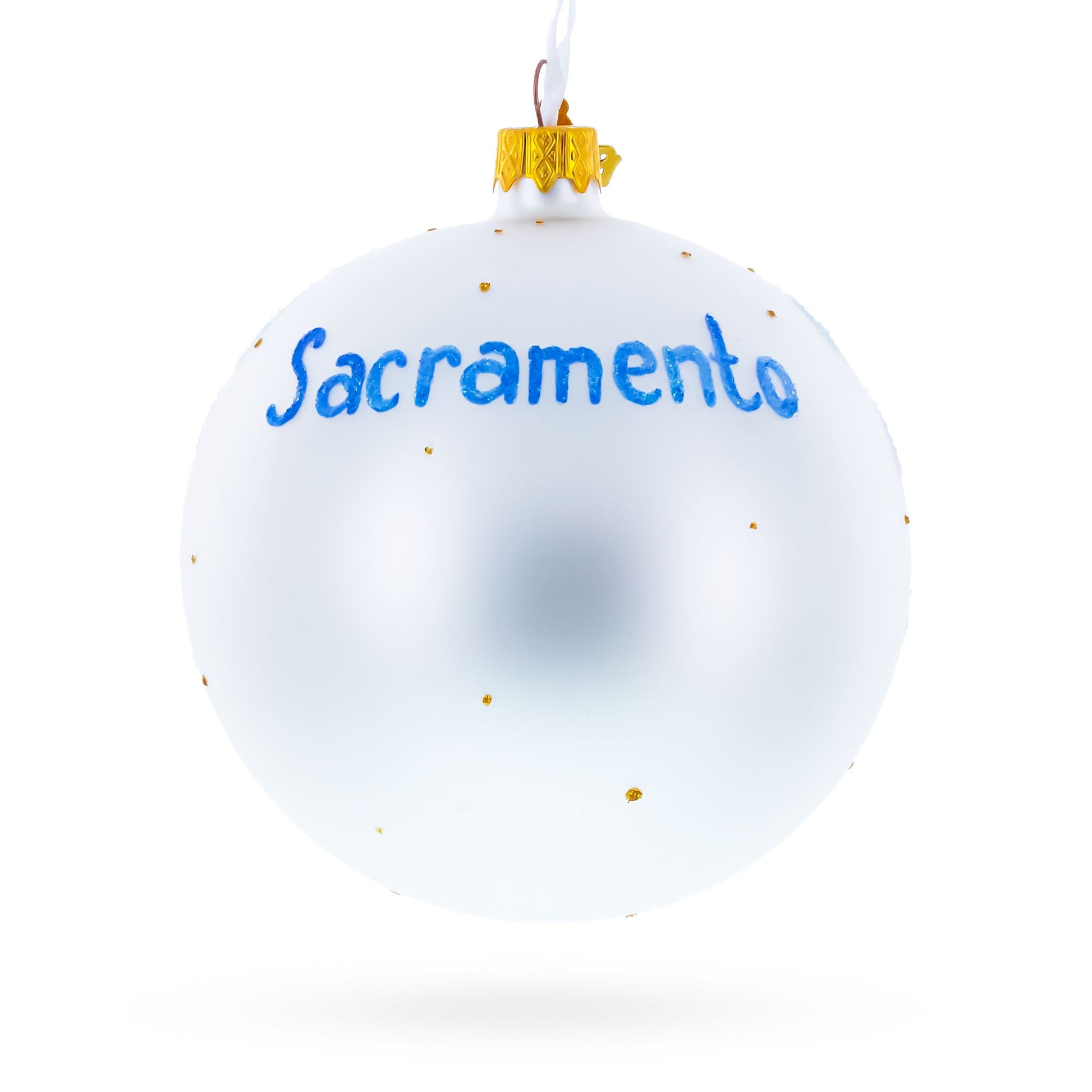 Skyline of Sacramento, California Glass Ball Christmas Ornament 4 Inches