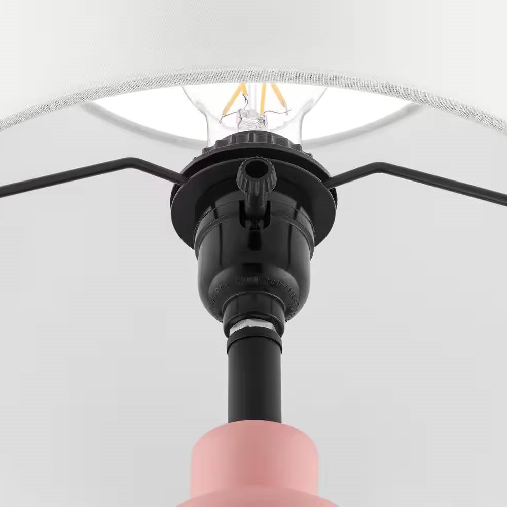 This lamp size is 10 in. W x 10 in. D x 14.05 in. H, which is finished in a mixed grey resin base. This Small Pink Desk Light Table Lamp with White Fabric Shade for Bedside Nightstand simple and modern design can be a good decoration for your living room or bedroom. It is using E26, 1 x 60-Watt type A not included. Enclosed manual makes it easy for you to install. It is not only a good choice for home decoration, but also an ideal gift choice for your family or friends on Christmas, Thanksgiving Day, birthday or housewarming. It can pass ETL certification.