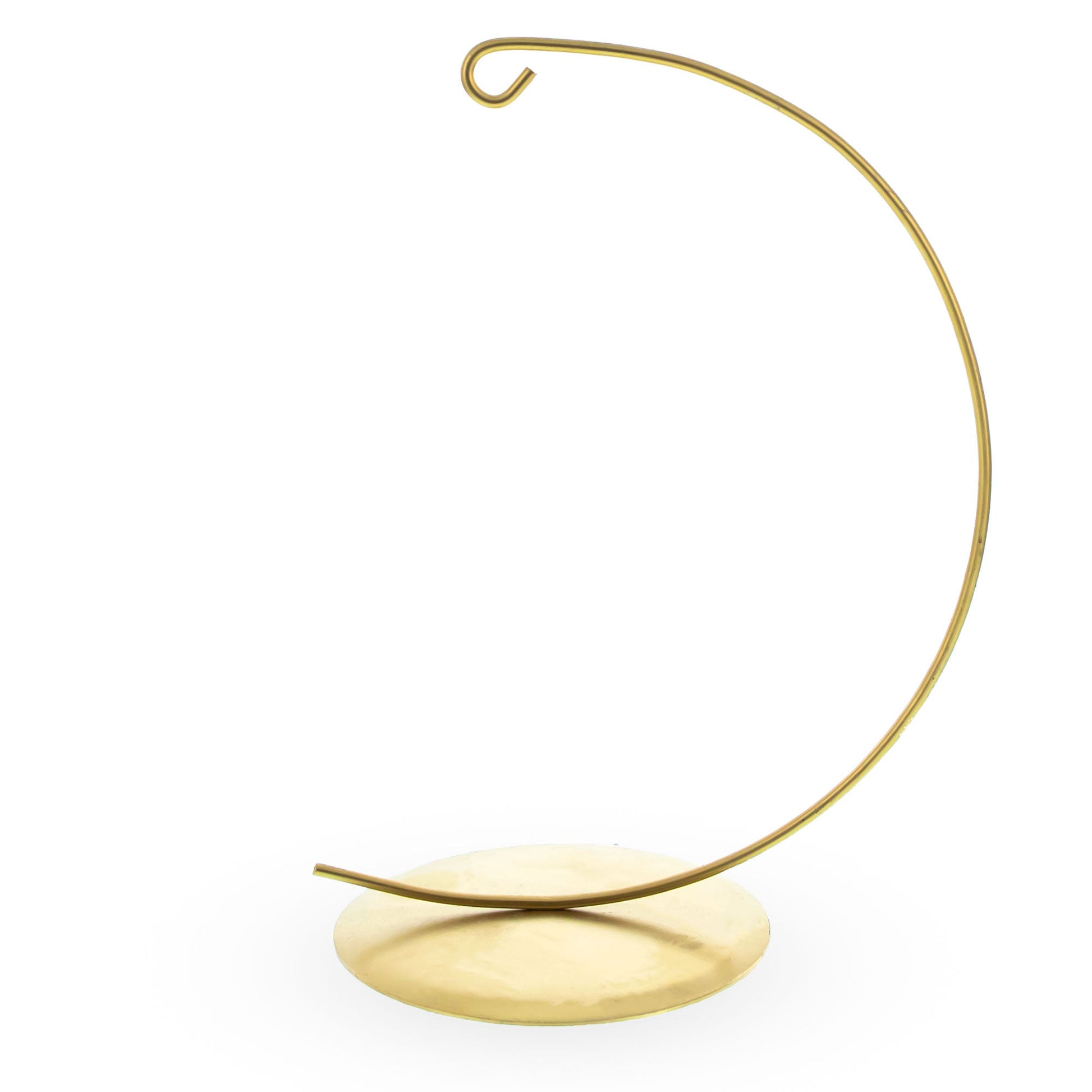 Showcase your favorite ornaments with elegance and simplicity using this 7.8-inch crescent-shaped display stand. Crafted from sturdy metal with a warm brass finish, it features a gracefully curved arm and a hand-hammered base that adds artisanal character.