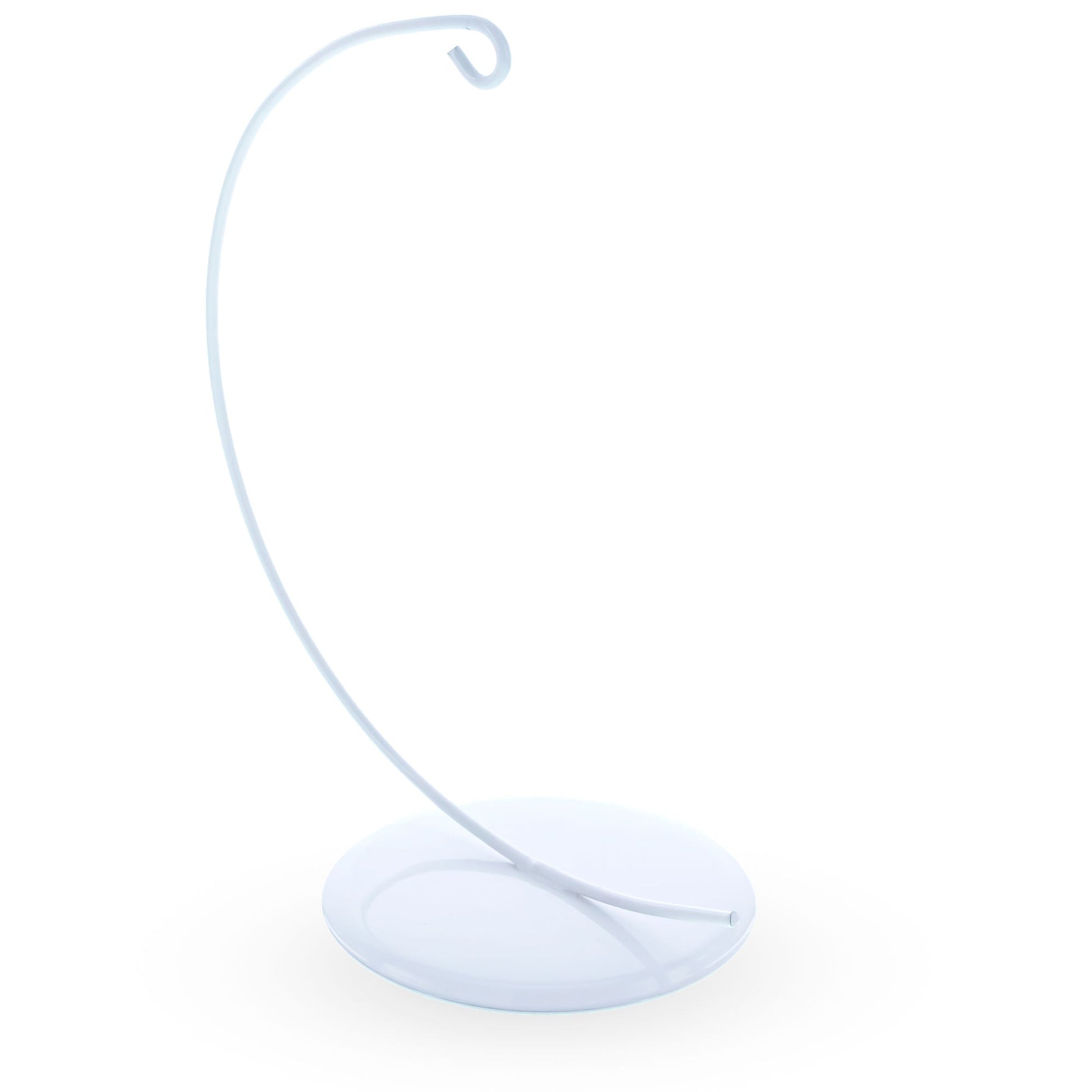 Showcase your favorite ornaments with elegance and simplicity using this 7.8-inch crescent-shaped display stand. Crafted from sturdy metal with a shiny white paint finish, it features a gracefully curved arm and a hand-hammered base that adds artisanal character.