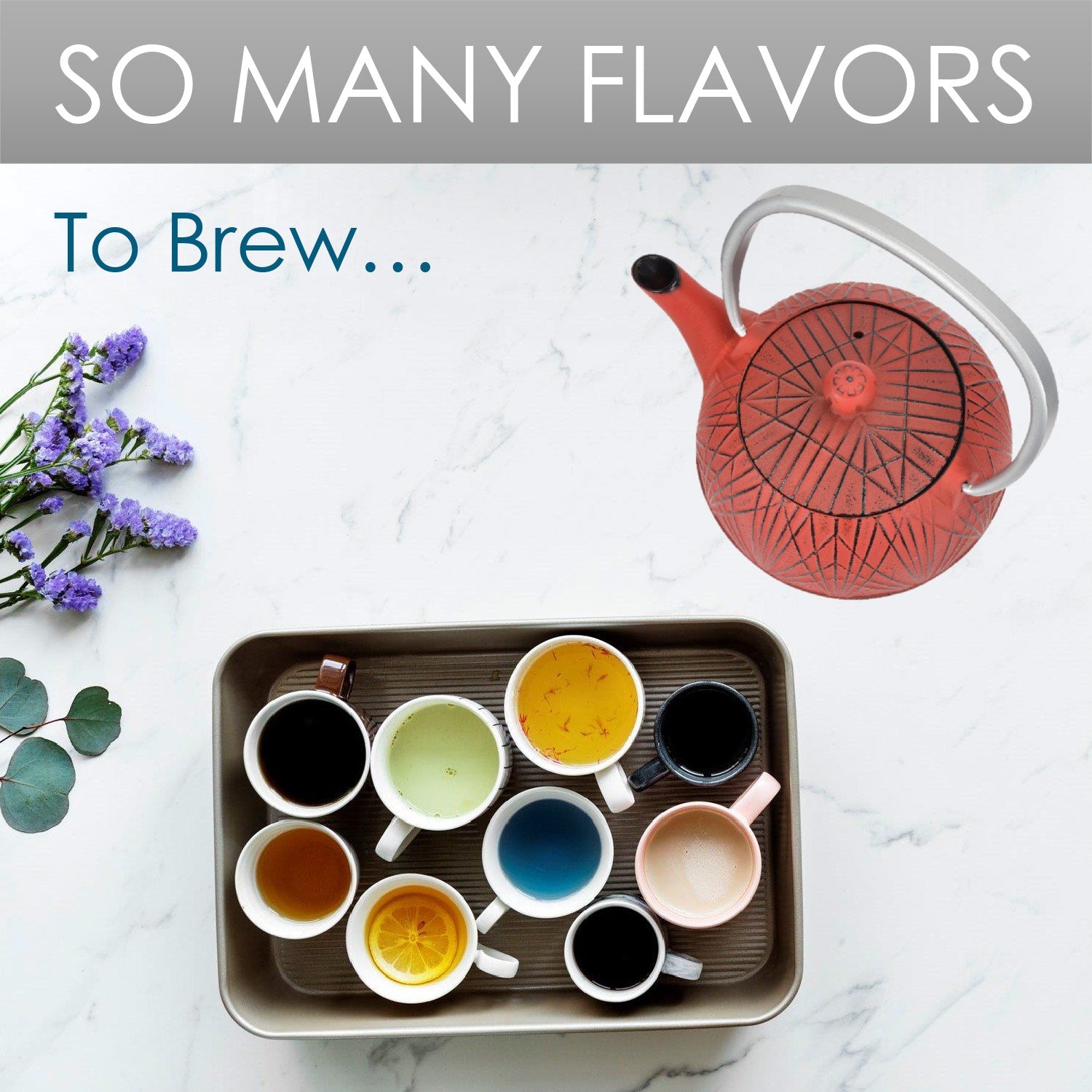 Spigo Hakone Cast Iron Enamel Teapot With Stainless Infuser, Red, 33 Ounces
