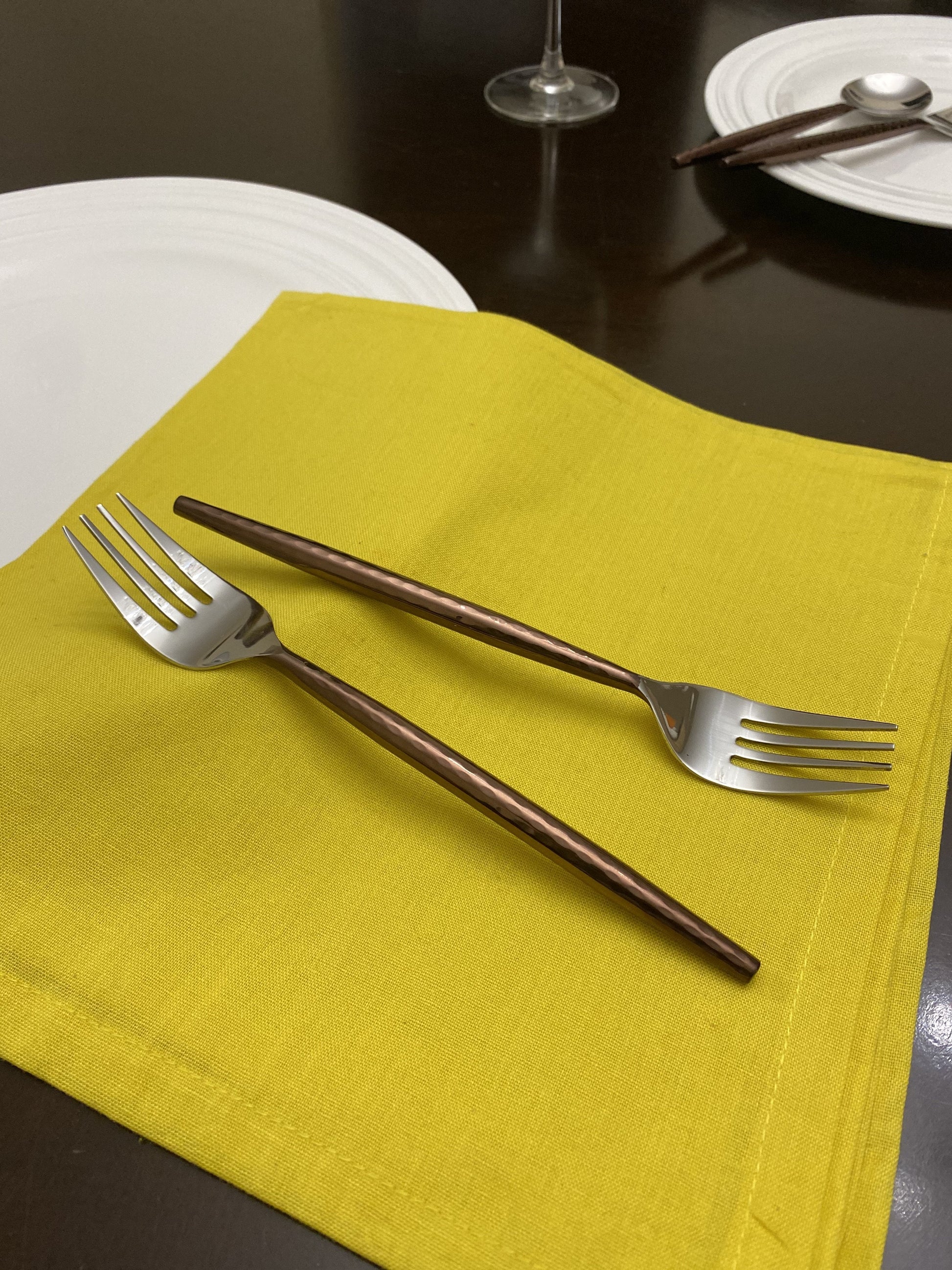 Dinner table should not be plain after your long day. Give an attractive charm to your dining decor with Vibhsa luxurious flatware set. Each piece is elegantly handcrafted and no 2 pieces will be alike. Vibhsa experiences you the best flatware designs for your tableware which attracts your guests on a dinner table. Set includes table setting for 6. 6 Dinner Forks (7.5”x1.1”x0.7”). This Luxury Flatware will heighten the level of sophistication of your table setting. High-quality Thickener Stainless Steel, Advanced mirror polishing technology. Made by artisan Stainless Steel cutlery set. Hammered designed handle with High Gloss Finish gives a classic look to your parties. Dish Washer safe. Top rack only. Hand wash is recommended. Do not soak, even in plain water, or leave unwashed overnight. Dry immediately with a soft cloth to avoid spots. Avoid any detergent with lemon or other acidic agents. Avoid contact with other metal objects. Do not use abrasive cleaners, steel wool or scouring pads that can scratch and dull metal surfaces Comes with Vibhsa one year breakage warranty. Perfect gift idea for housewarming gifts, Christmas gift, Wedding gift, anniversary gift, mother's day gift