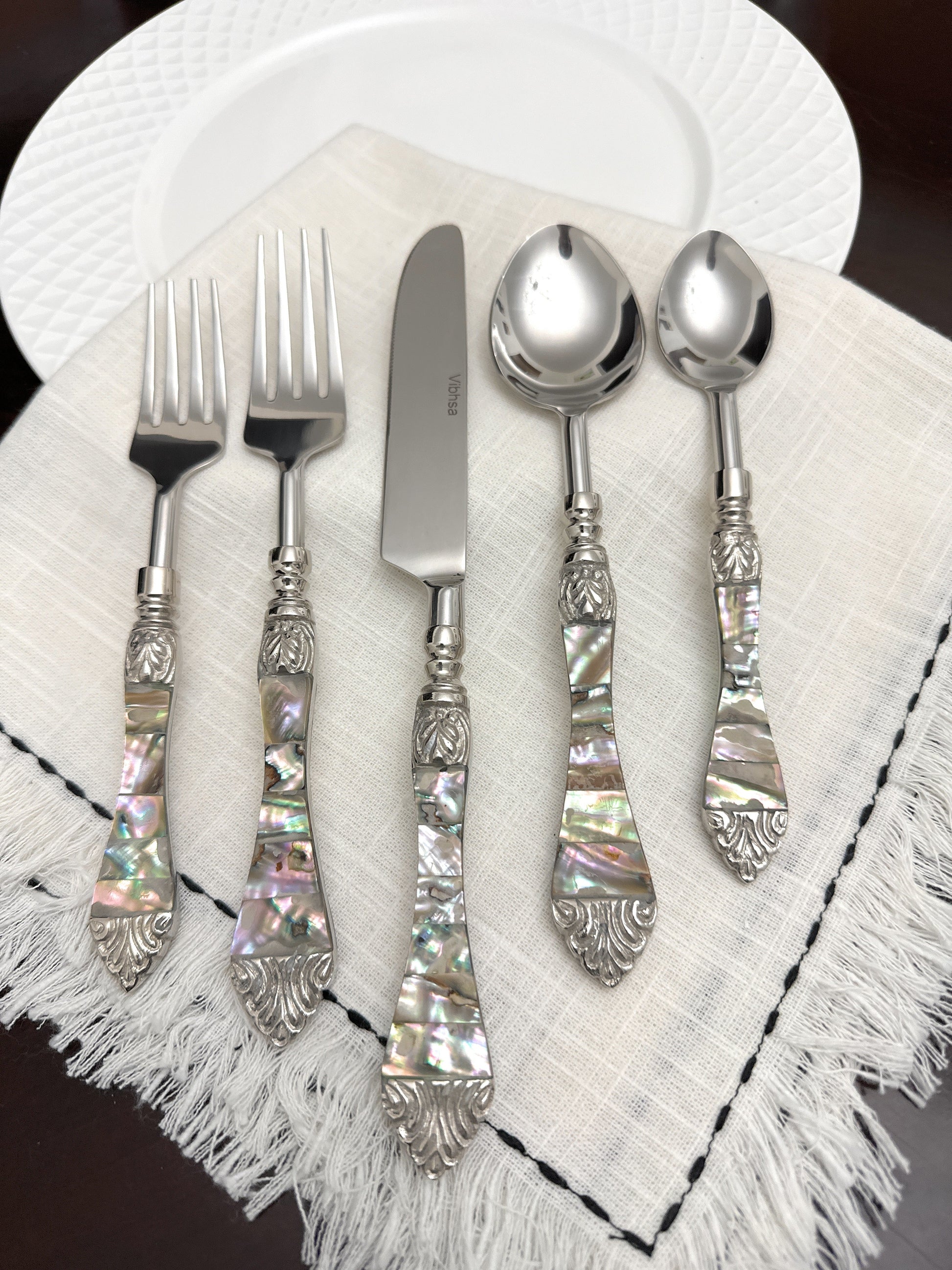 Introducing our Stainless Steel Flatware set of 20 with Seawork Handle, a stunning fusion of functionality and coastal-inspired design. Each piece in this set features handles adorned with intricate seashell and wave patterns, bringing the beauty of the sea to your dining table. Crafted from high-quality stainless steel, this flatware set offers exceptional durability, corrosion resistance, and lasting shine. The weight and balance of each utensil are carefully calibrated to provide a comfortable grip and effortless control. The 20-piece set includes all the essential utensils needed for a complete dining setting, including dinner forks, salad forks, dinner knives, dinner spoons, and teaspoons. Whether you're hosting a beachside gathering or simply want to infuse a touch of coastal charm into your dining experience, this collection is the perfect
