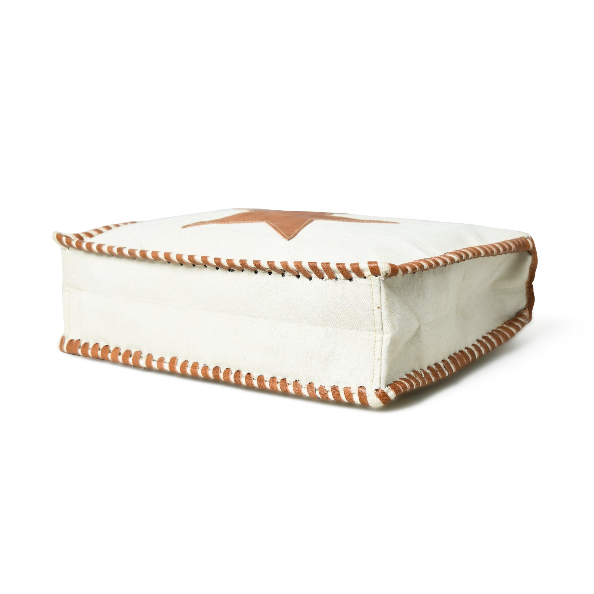 Elevate your style with this chic Canvas and Leather Shopper's Bag. Its white body, adorned with contrasting leather threads, exudes fashion-forward elegance. The star-shaped leather cut-out with patchwork adds a trendy focal point.