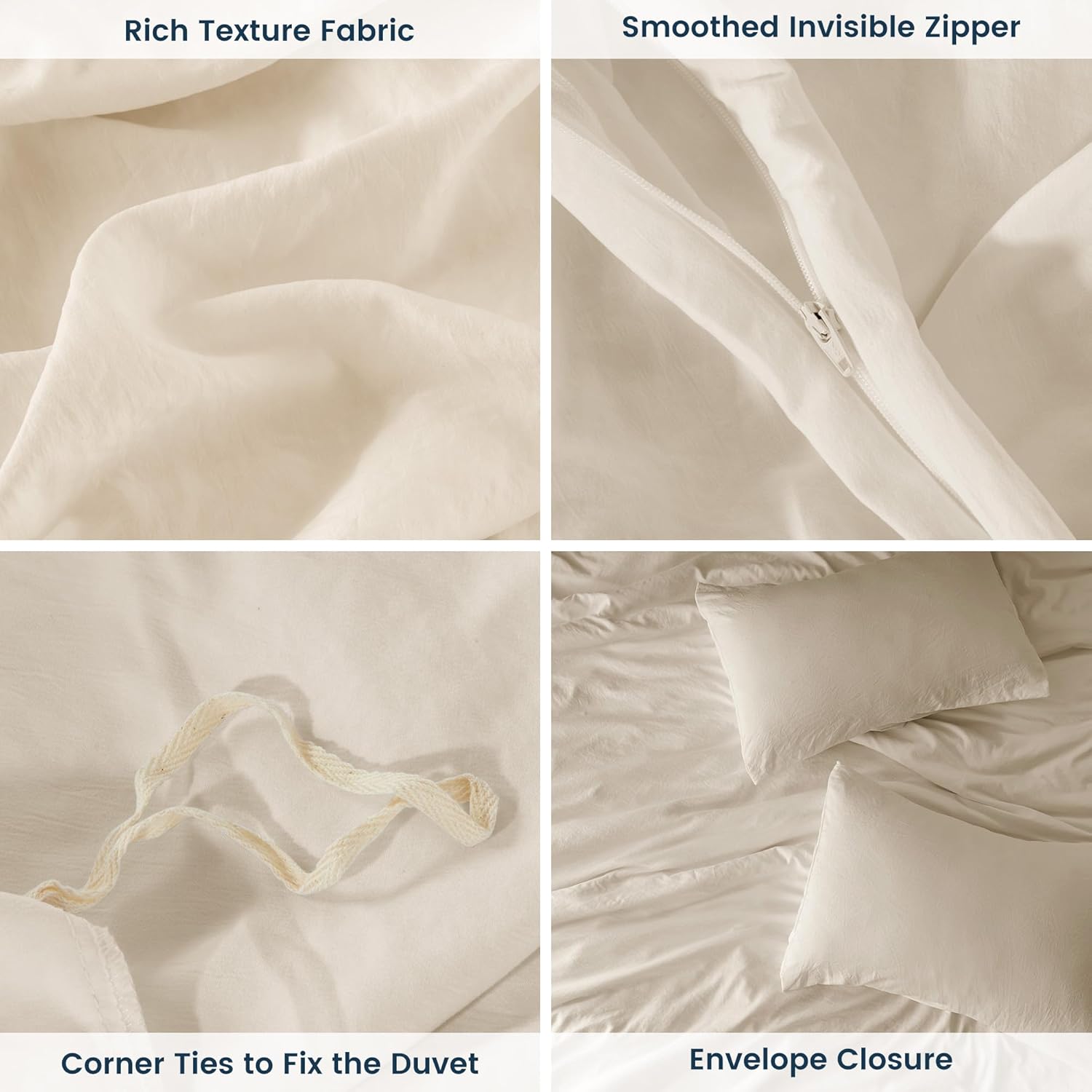 - 【EASY CARE】:Designed for hassle-free maintenance, this set is machine washable for your convenience. While ironing and high-temperature tumble drying are not recommended, its hidden YKK zipper ensures durability, and the 8 interior corner ties keep the duvet securely in place.