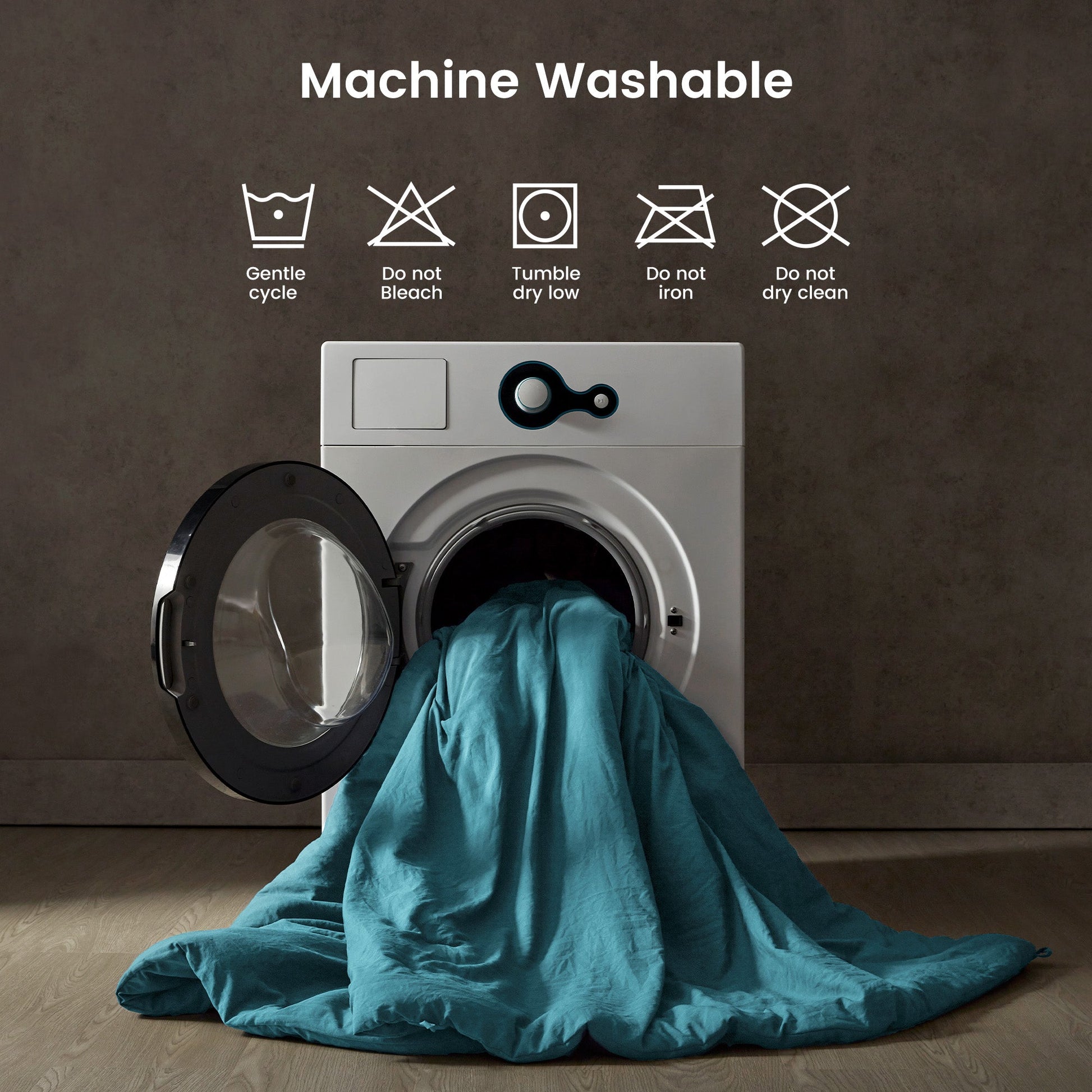 · 【EASY CARE】:Designed for hassle-free maintenance, this set is machine washable for your convenience. While ironing and high-temperature tumble drying are not recommended, its hidden YKK zipper ensures durability, and the 8 interior corner ties keep the duvet securely in place.