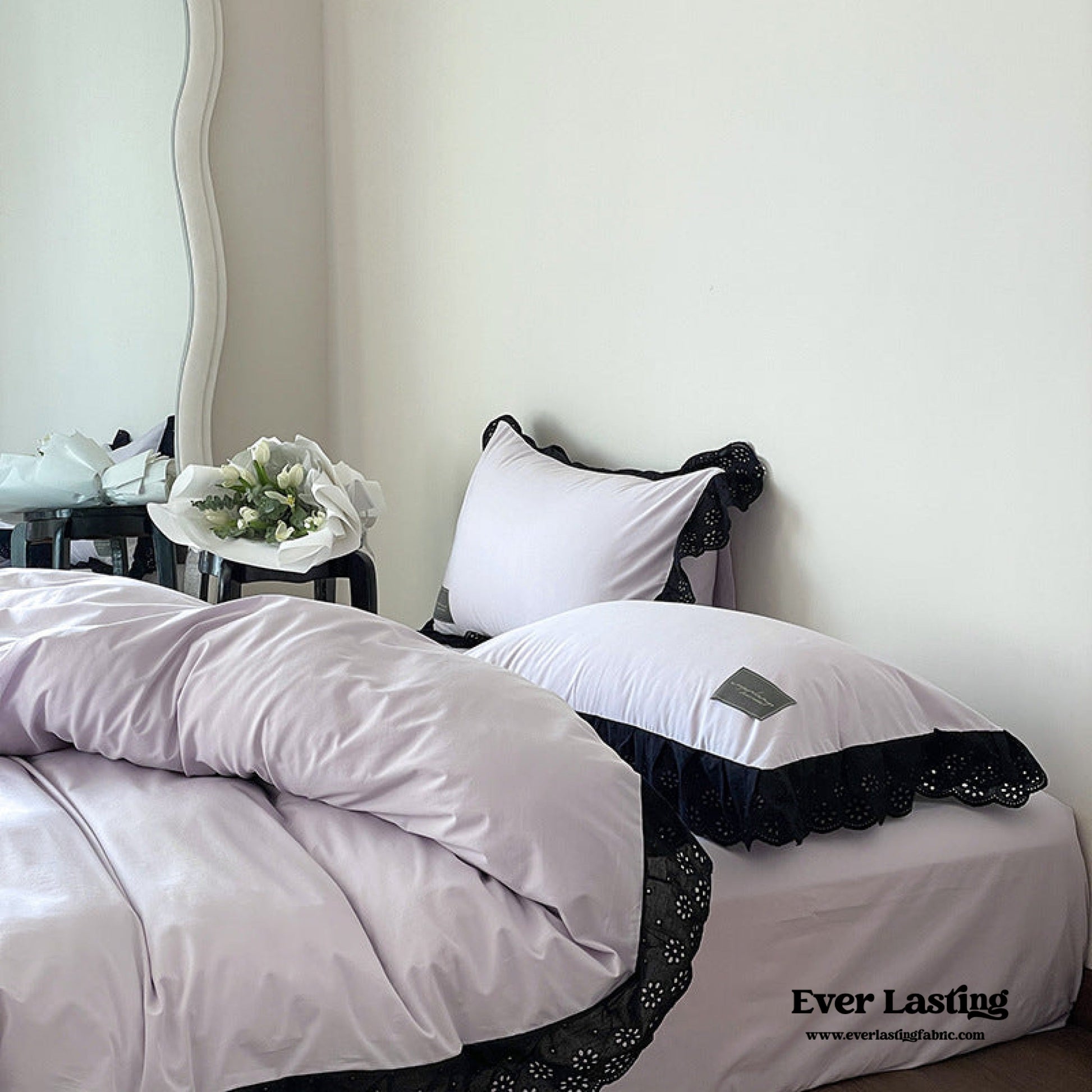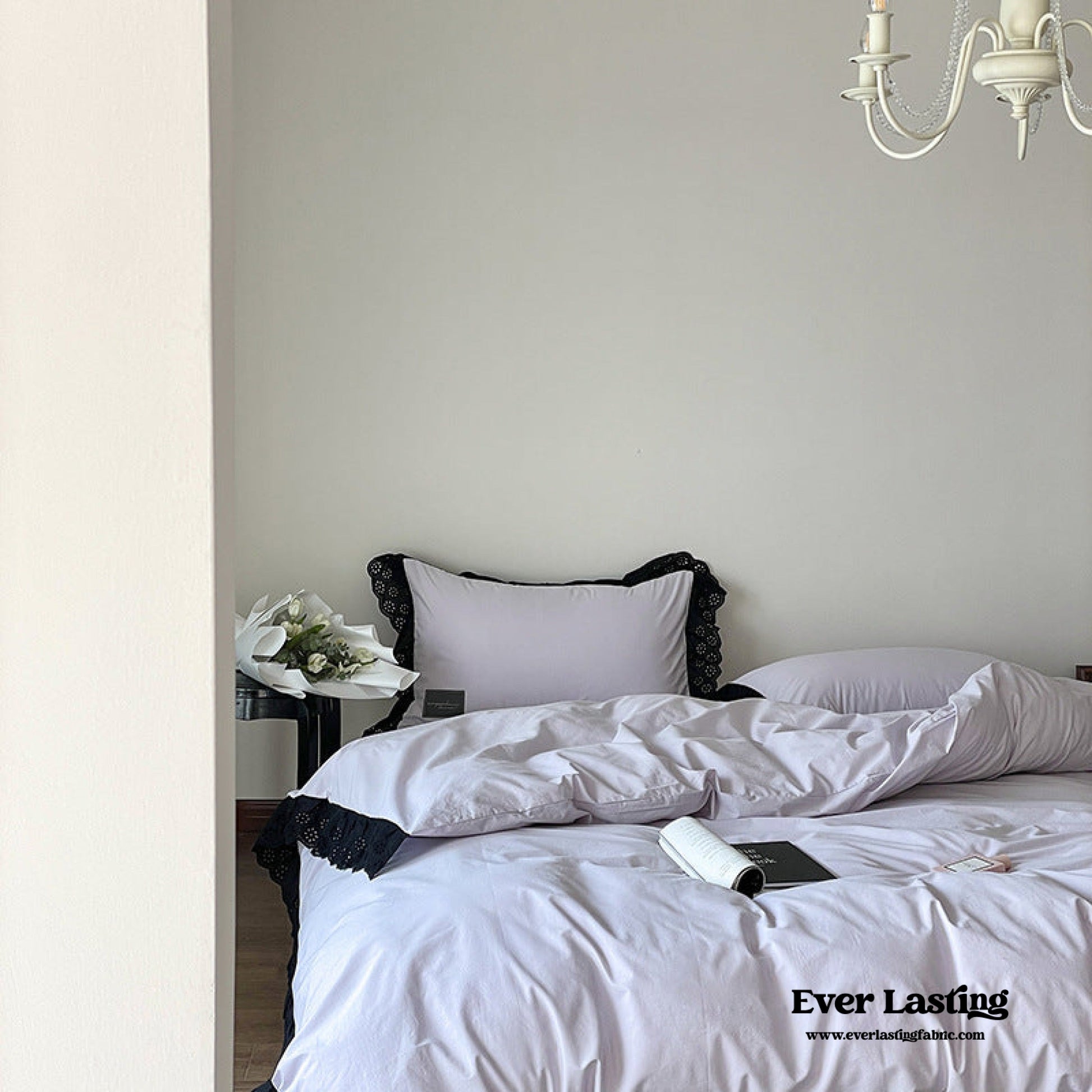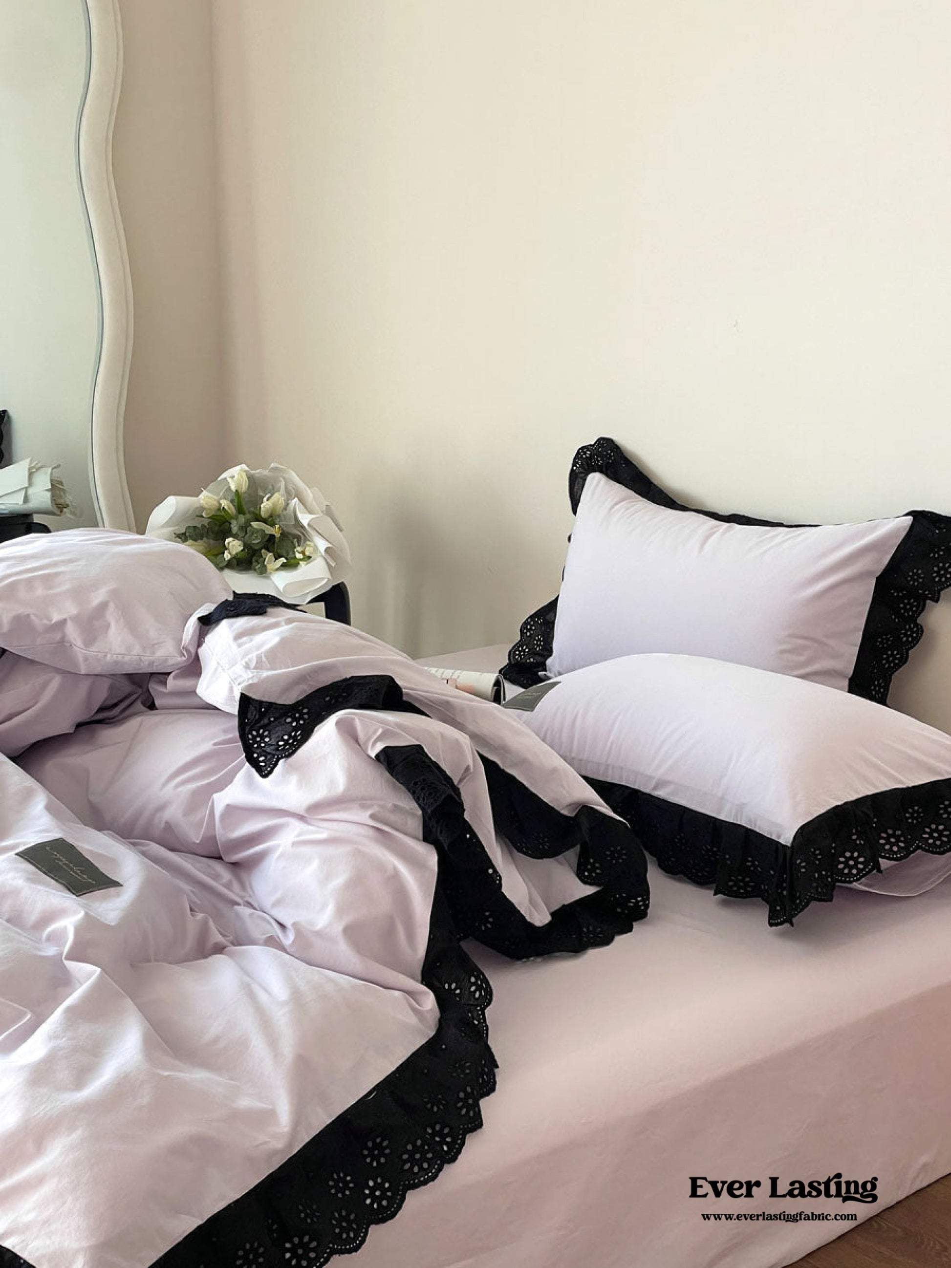 Indulge in the rich elegance and sweet charm of our Strawberry Black Lace Ruffle Bedding Set from Ever Lasting. This set epitomizes classic romance with intricate black lace details that exude sophistication and coquette allure. Crafted for both aesthetics and comfort, it transforms your bedroom into a haven of timeless beauty and relaxation. Each duvet cover features four corner ties and a hidden zipper, ensuring your duvet insert stays securely in place all night. Elevate your sleep experience with this exquisite and stylish bedding set, where the allure of lace meets the promise of serene sophistication in every ruffle.