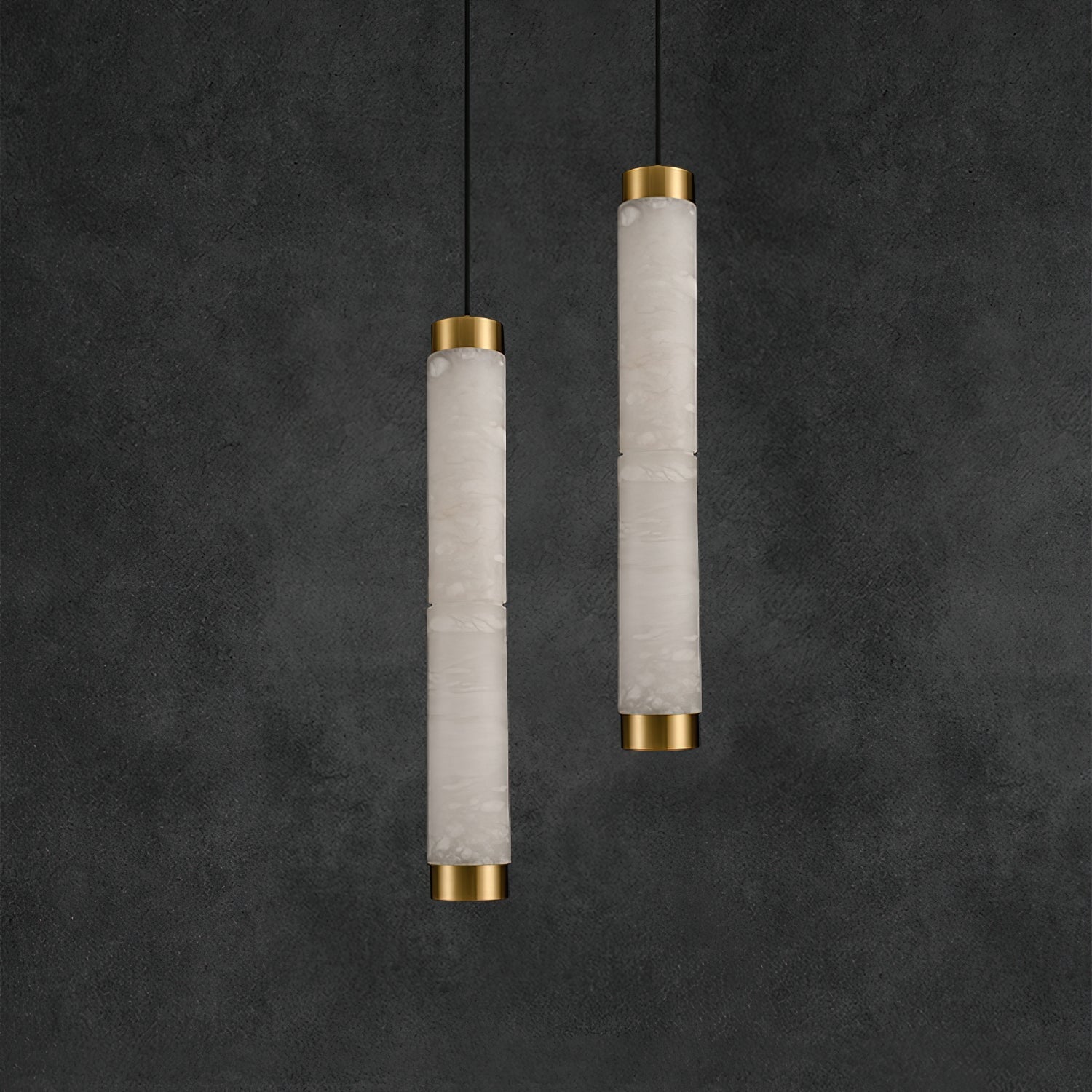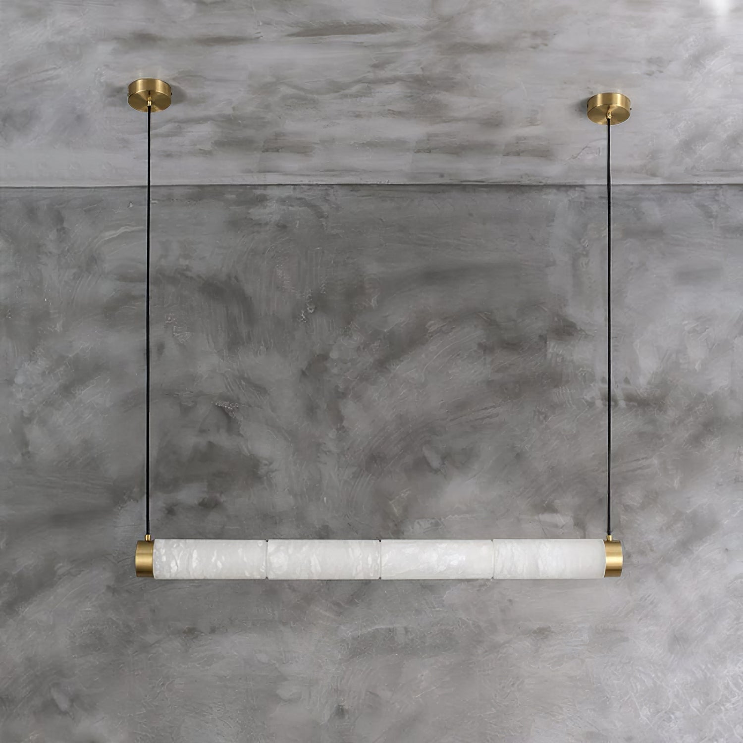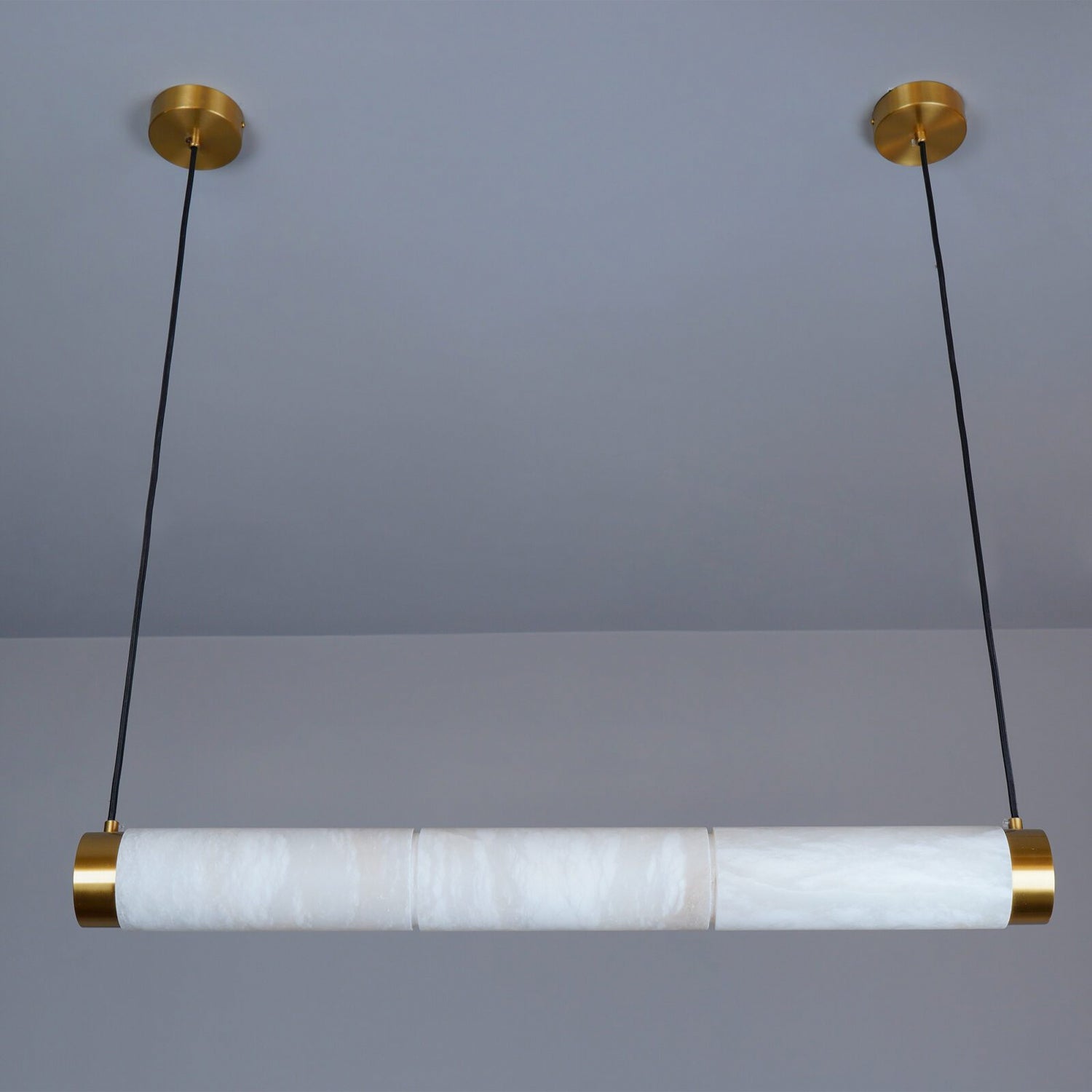 The Strip Alabaster Pendant Light is a versatile chandelier crafted from natural, textured marble. This unique material adds an elegant touch to the simple shape of the lamp, making it a perfect addition for a variety of interiors and counter displays. Each piece is one-of-a-kind and can be used in a range of different settings.