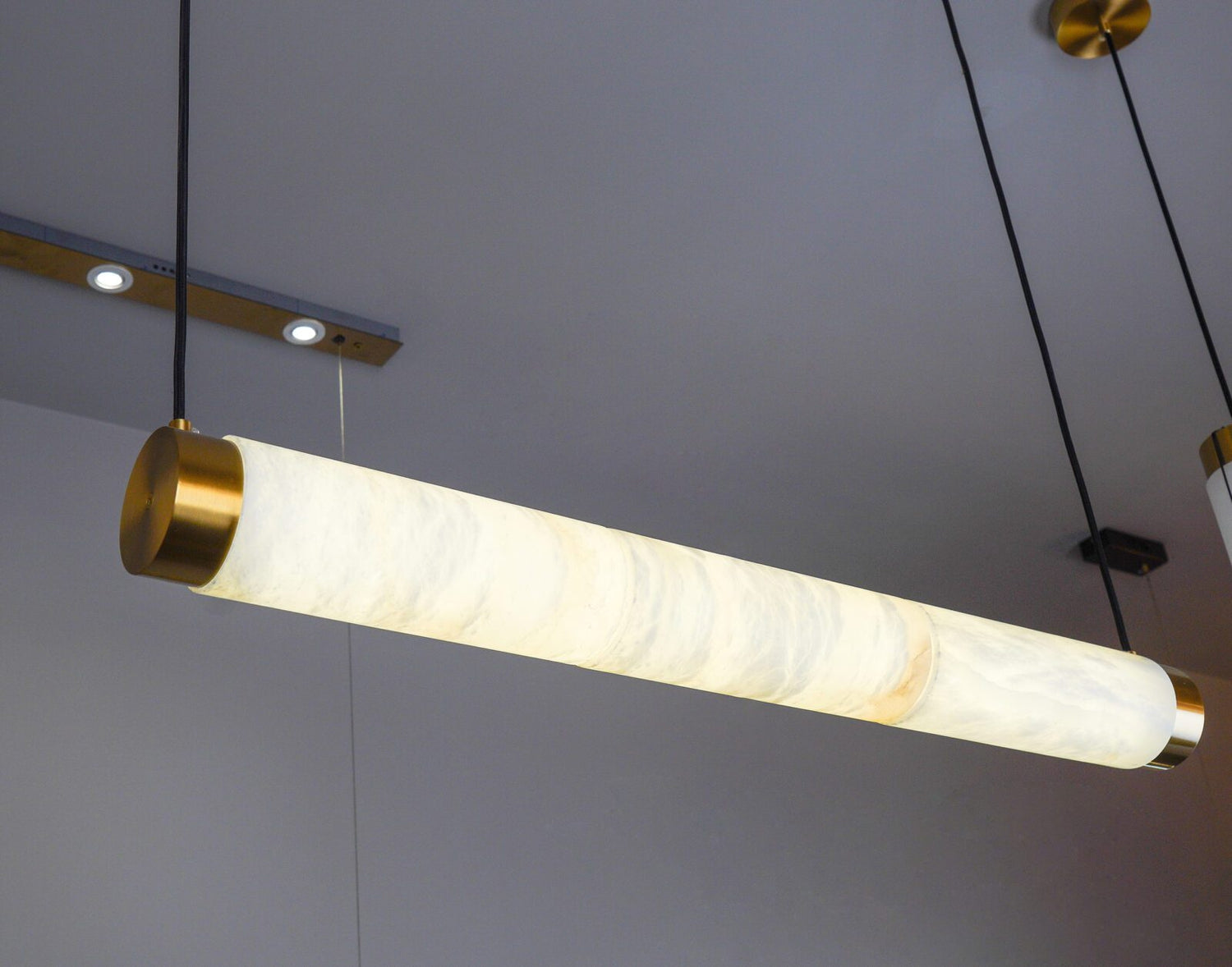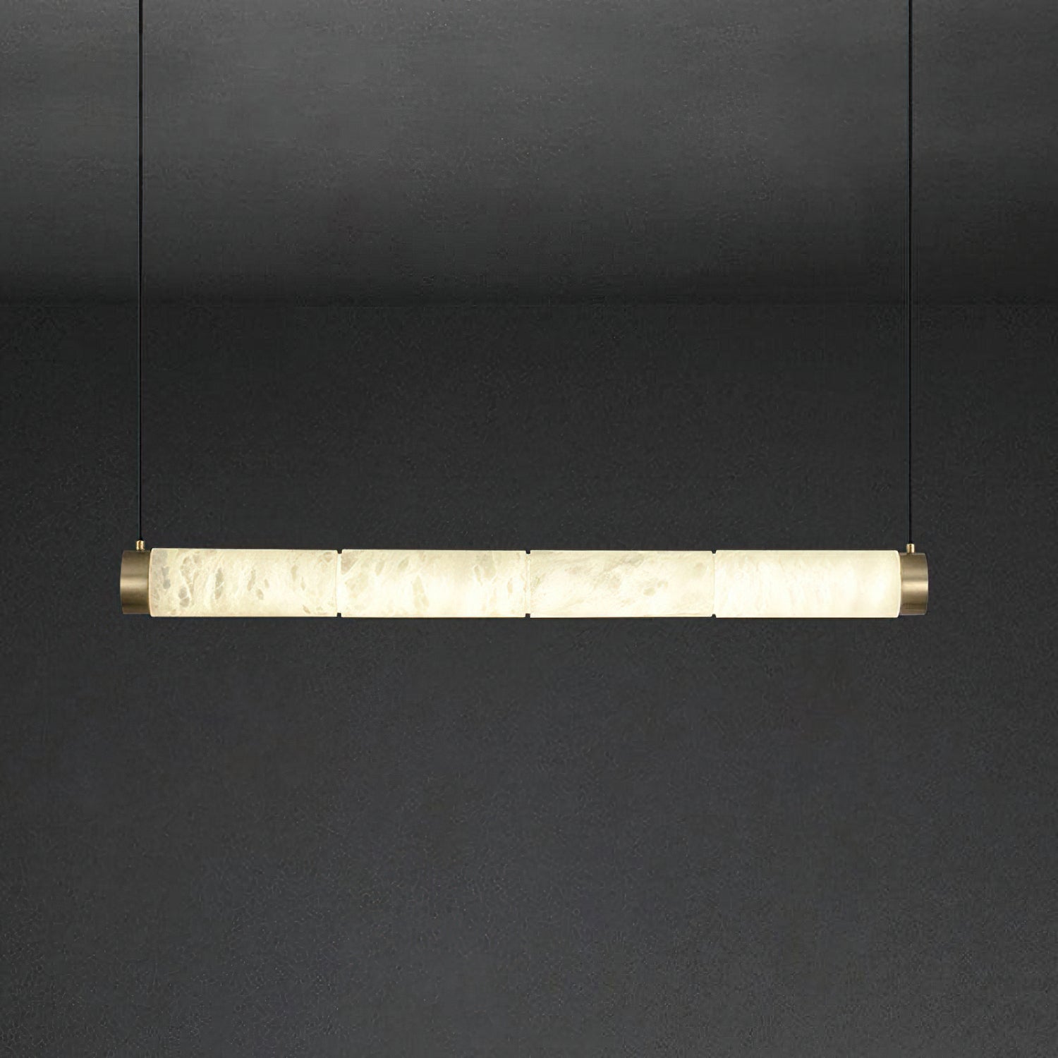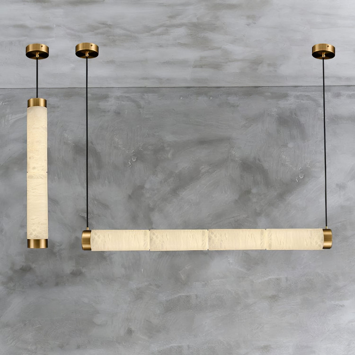 The Strip Alabaster Pendant Light is a versatile chandelier crafted from natural, textured marble. This unique material adds an elegant touch to the simple shape of the lamp, making it a perfect addition for a variety of interiors and counter displays. Each piece is one-of-a-kind and can be used in a range of different settings.