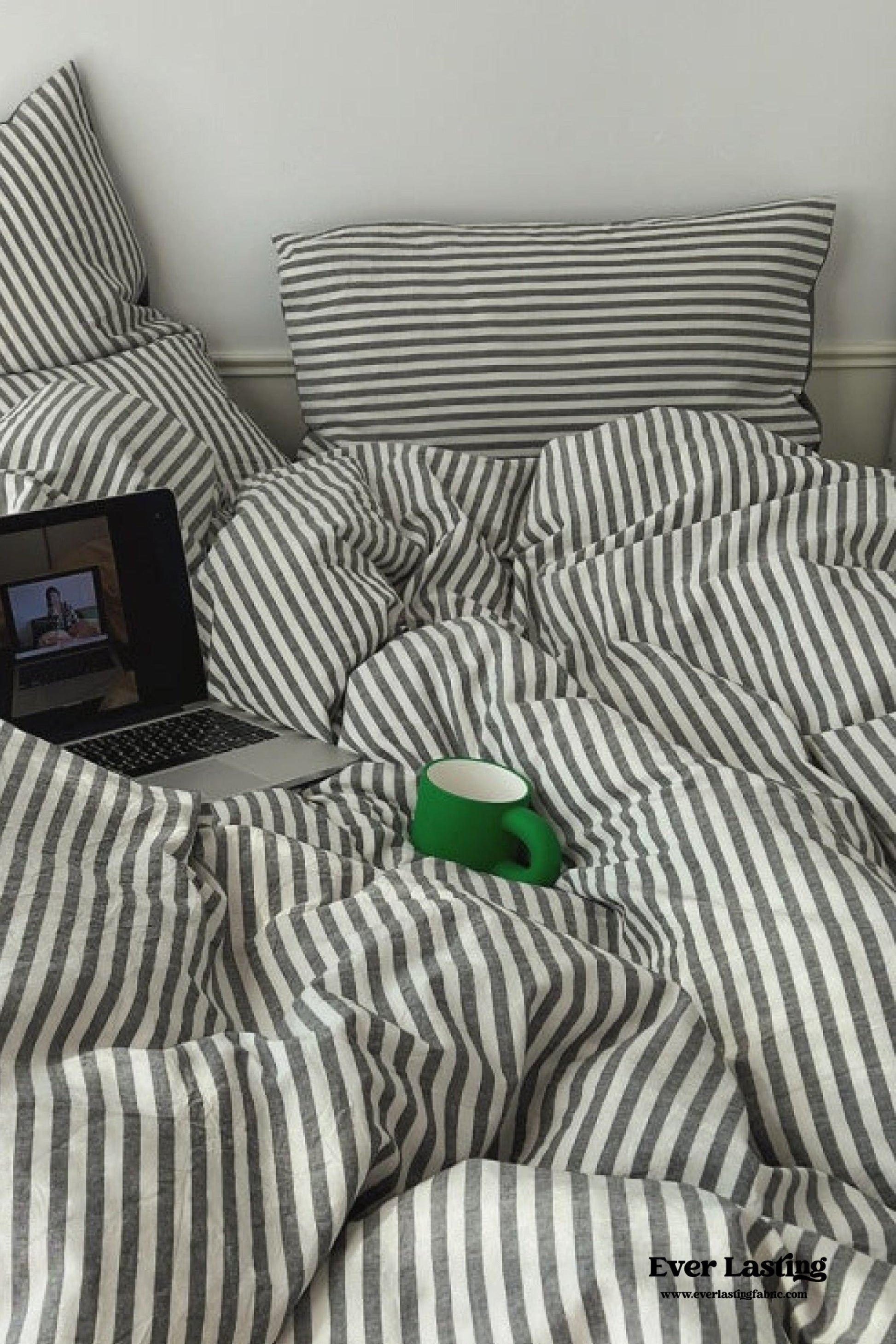 Transform your bedroom into a serene oasis with Ever Lasting's Blue Cotton Striped Bedding Set. Designed with a cozy minimalist aesthetic, this bedding set protects your comforter from everyday wear while providing a super-soft, breathable feel. Made from 100% washed cotton, it offers perfect comfort and long-lasting quality. The elegant blue striped pattern adds a touch of sophistication to your bedroom decor. Each duvet cover features corner ties and a hidden zipper to securely hold your duvet insert in place, ensuring enduring quality tailored just for you. Ideal for those seeking a blend of aesthetic style and practical design, this bedding set turns your sleep space into a chic, comfortable retreat.