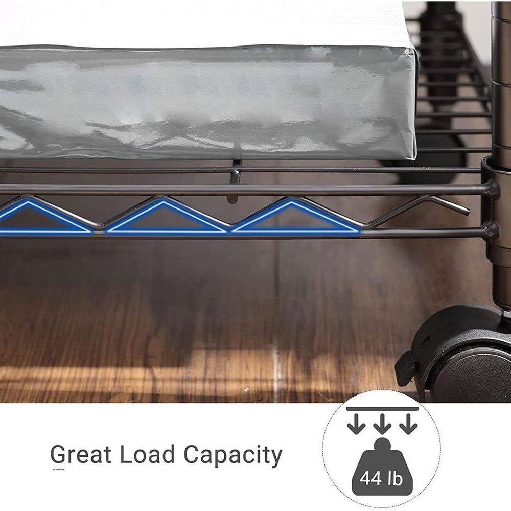 - Max. Static Load Capacity per Metal Shelf: 44lbs. (20 kg)