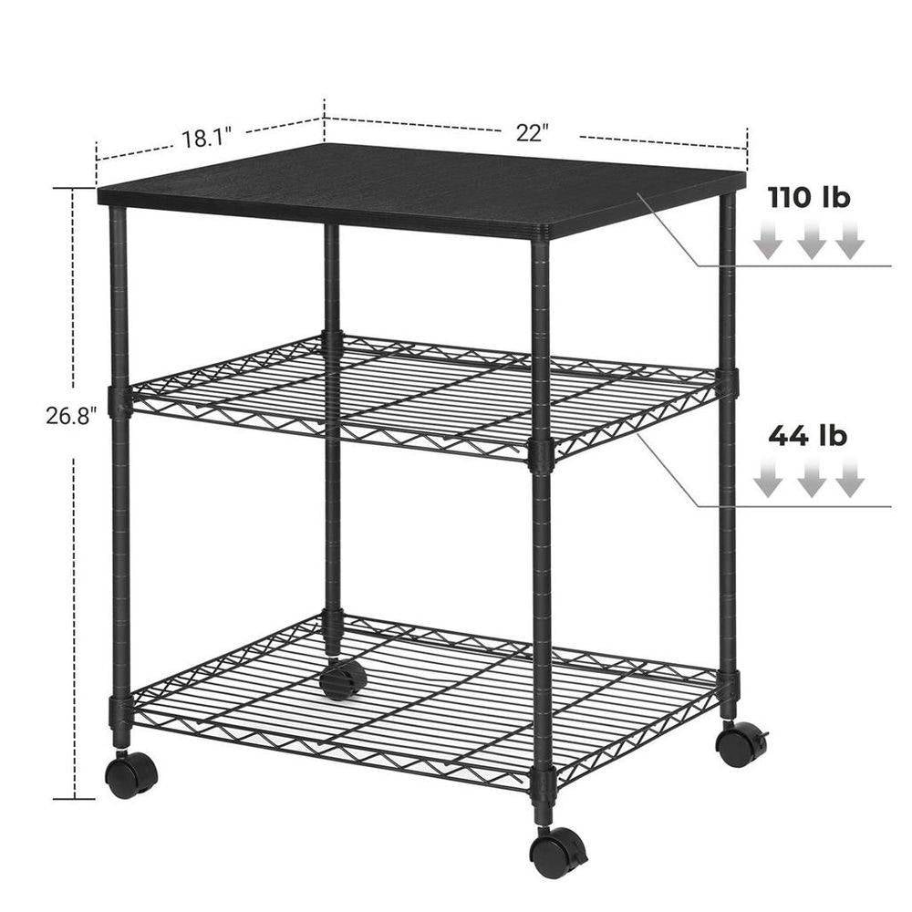 - Sturdy Black Metal Wood Printer Stand Cart with 2-Shelves and Locking Casters