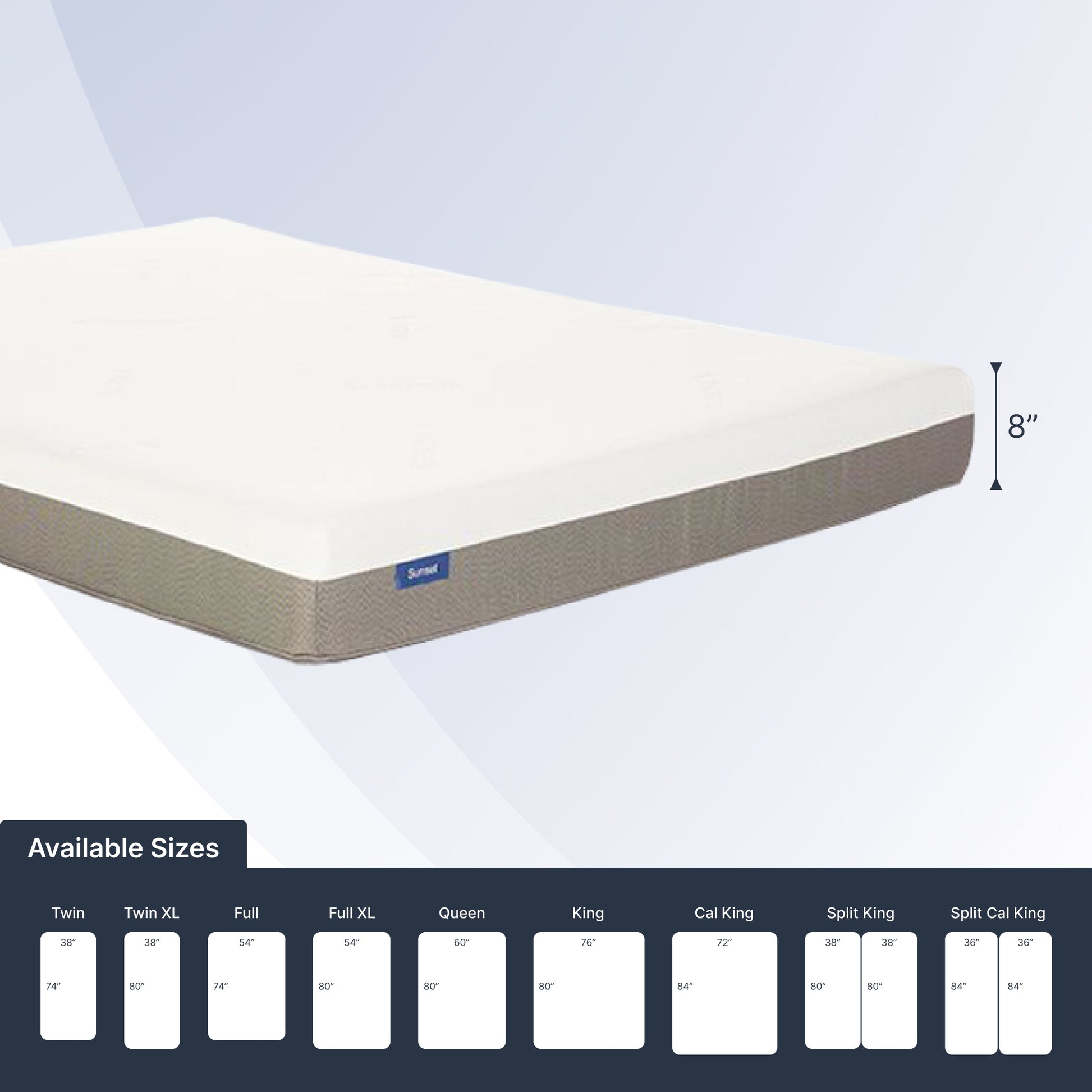 A memory foam mattress from the Avant® Collection, the Sunset has a medium-feel. It features a Gel-infused Memory foam comfort layer and natural Tencel ticking, for a cool, soft and refreshing feel.