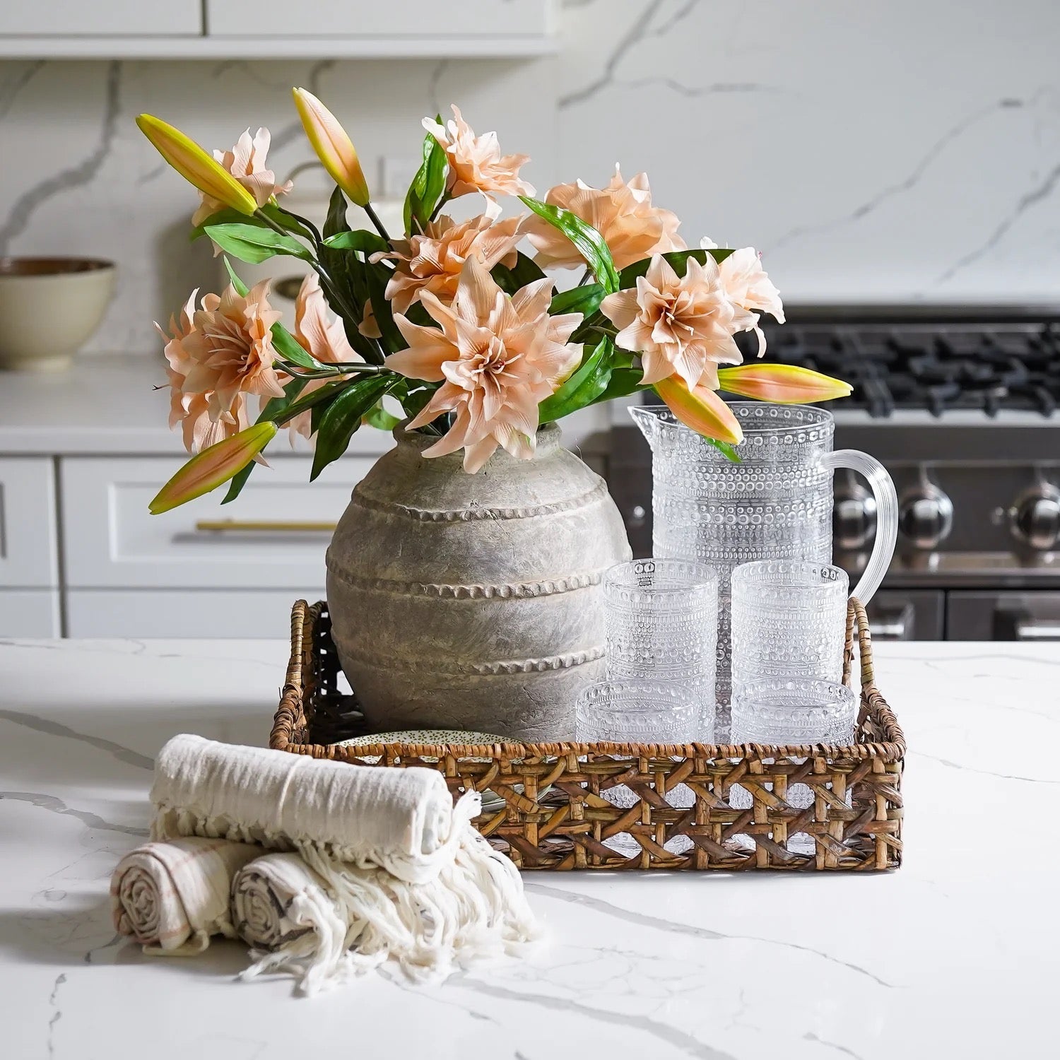 With a detailed embossed dot pattern and crystal-clear finish, this 6.25" melamine tumbler brings texture and style to any sip. Made to resemble pressed glass but crafted from sturdy melamine, it offers the beauty of delicate drinkware with everyday durability. Perfect for patio gatherings, kids' tables, or adding charm to your drink station—without worrying about chips or breaks.