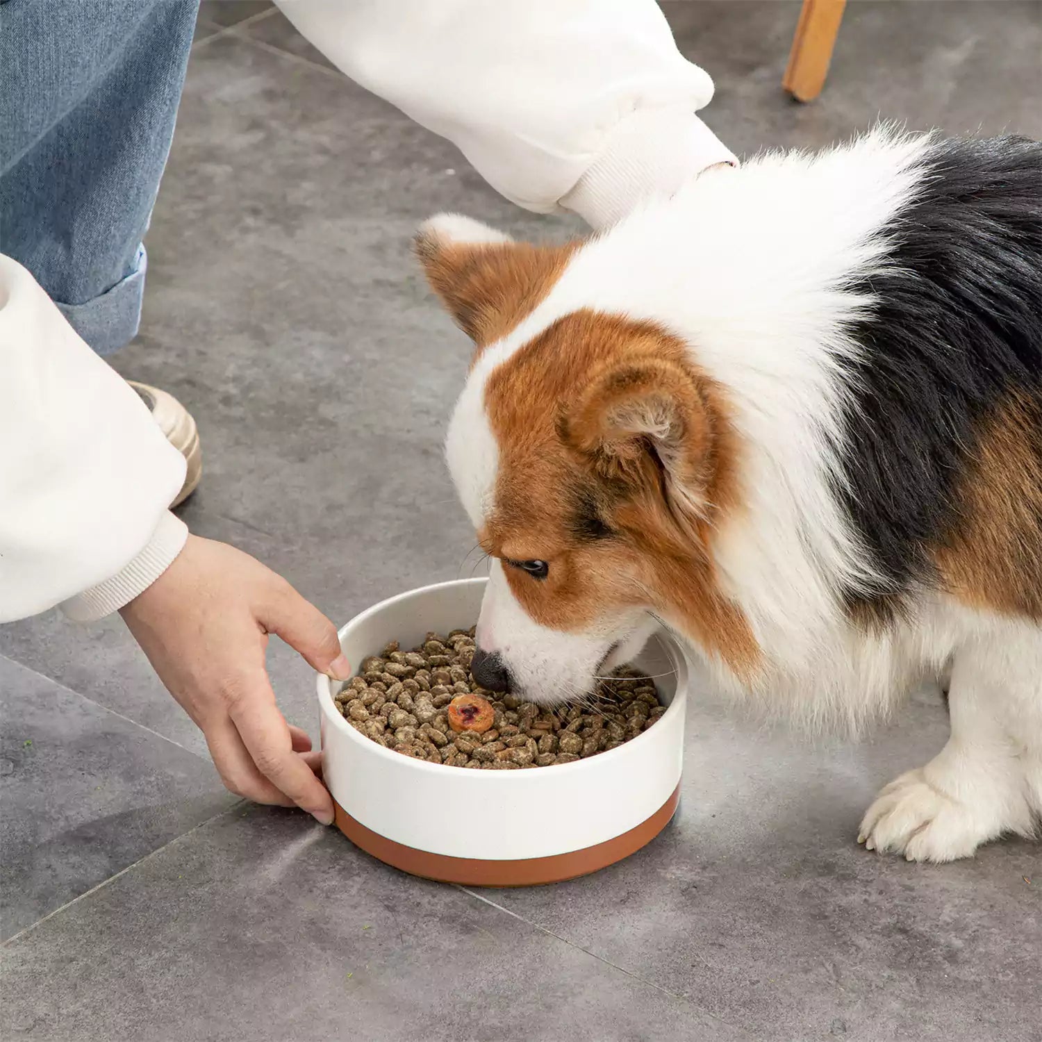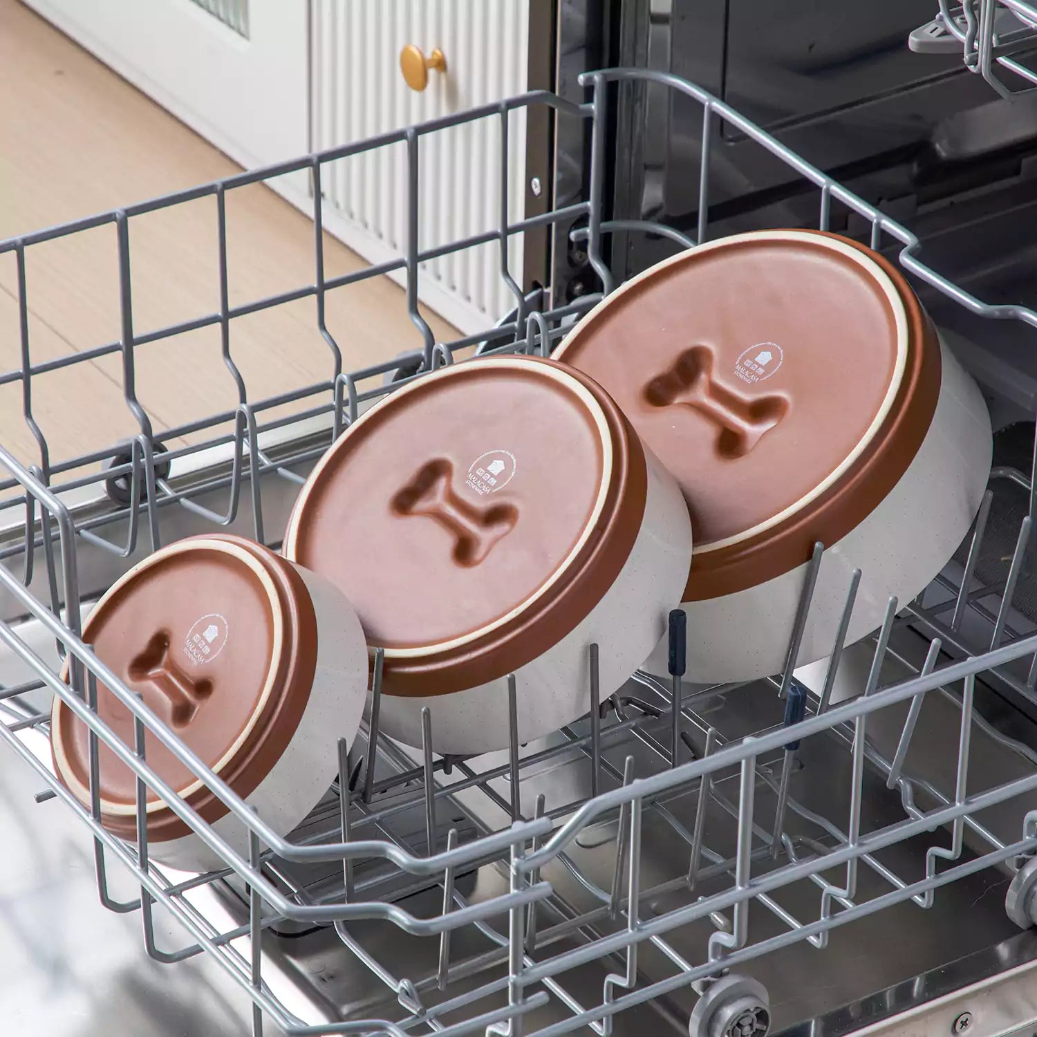 Versatile-sized Tara Dog Bowls, available in 5.5", 6.75", and 8" options, are designed to suit dogs of all sizes—from small breeds like Chihuahuas to larger companions such as Golden Retrievers. The wide, weighted base ensures stability, preventing tipping and minimizing spills, while the thickened walls offer a secure feeding experience and reduce mess. A playful bone-shaped cut-out at the base enhances airflow, keeping the bowl clean and dry. Crafted from durable stoneware with a speckled glaze and matte clay finish, these bowls are microwave- and dishwasher-safe, ensuring effortless cleanup and long-lasting durability. Kindly note: The listed price is for a single bowl.
