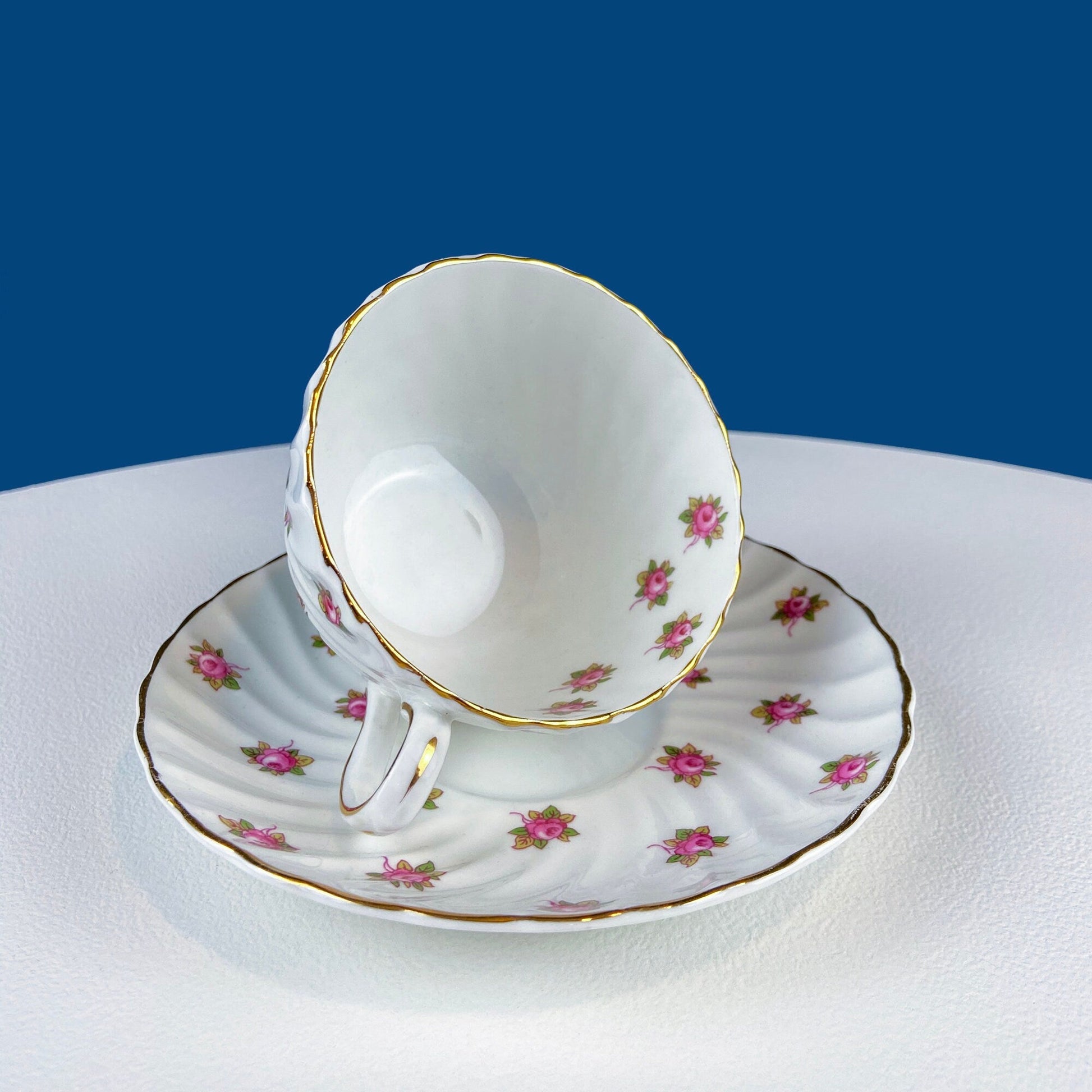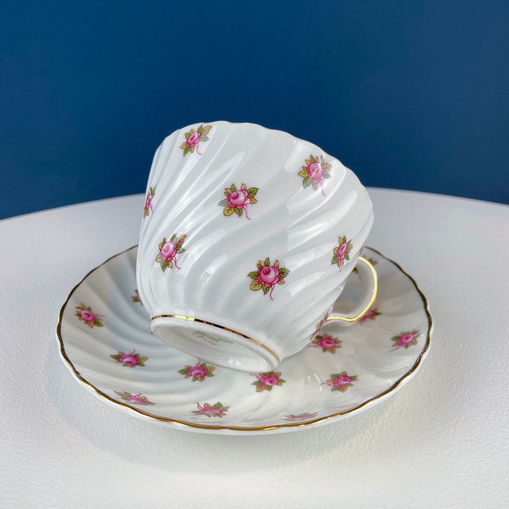 Tea or Coffee Cup and Saucer with Small Pink Roses. Aynsley Fine China. Dining Room Decor. Tea Party. French Country. Gift for Her.