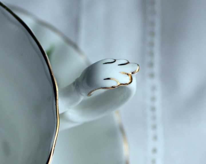 Teacup with Saucer by Royal Albert, England. Hand Painted Trillium. Beautiful Shape and of Handle. Dining Room Decor. Gift for Her.