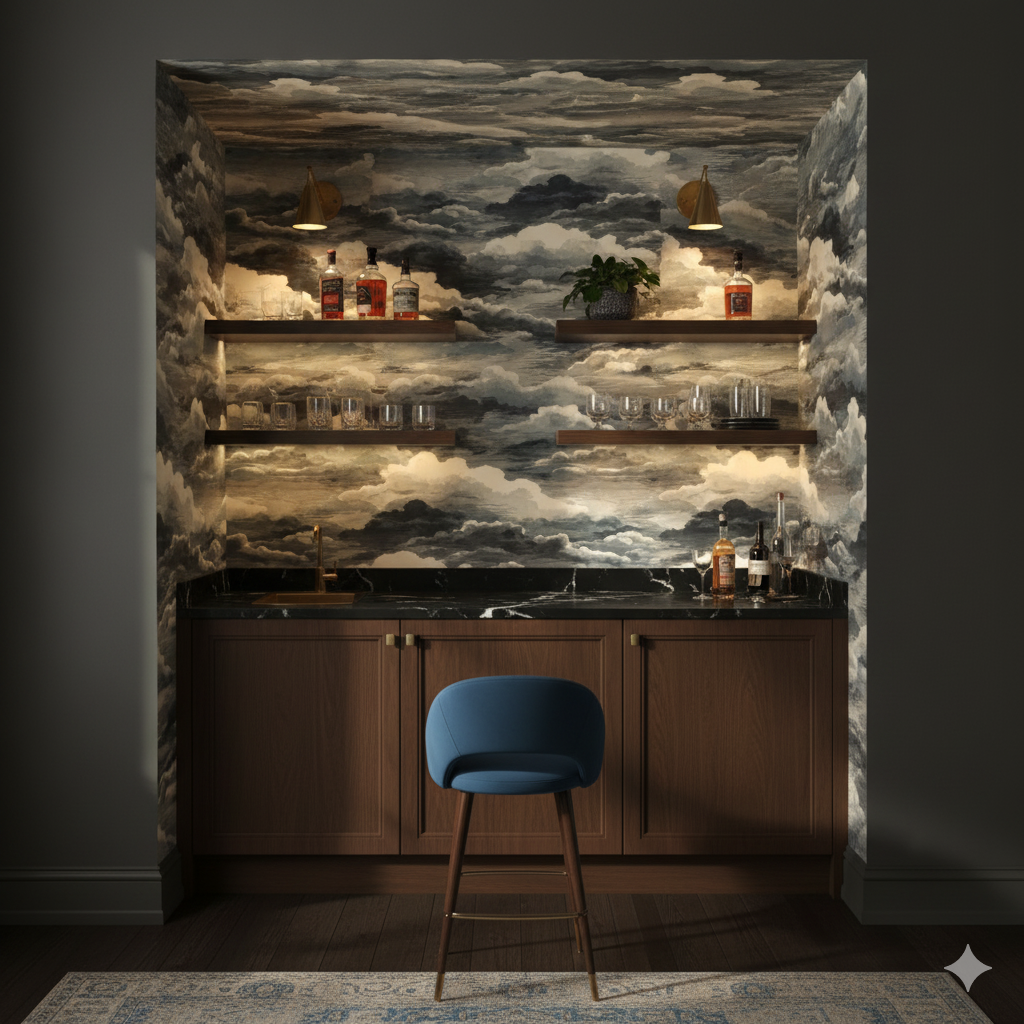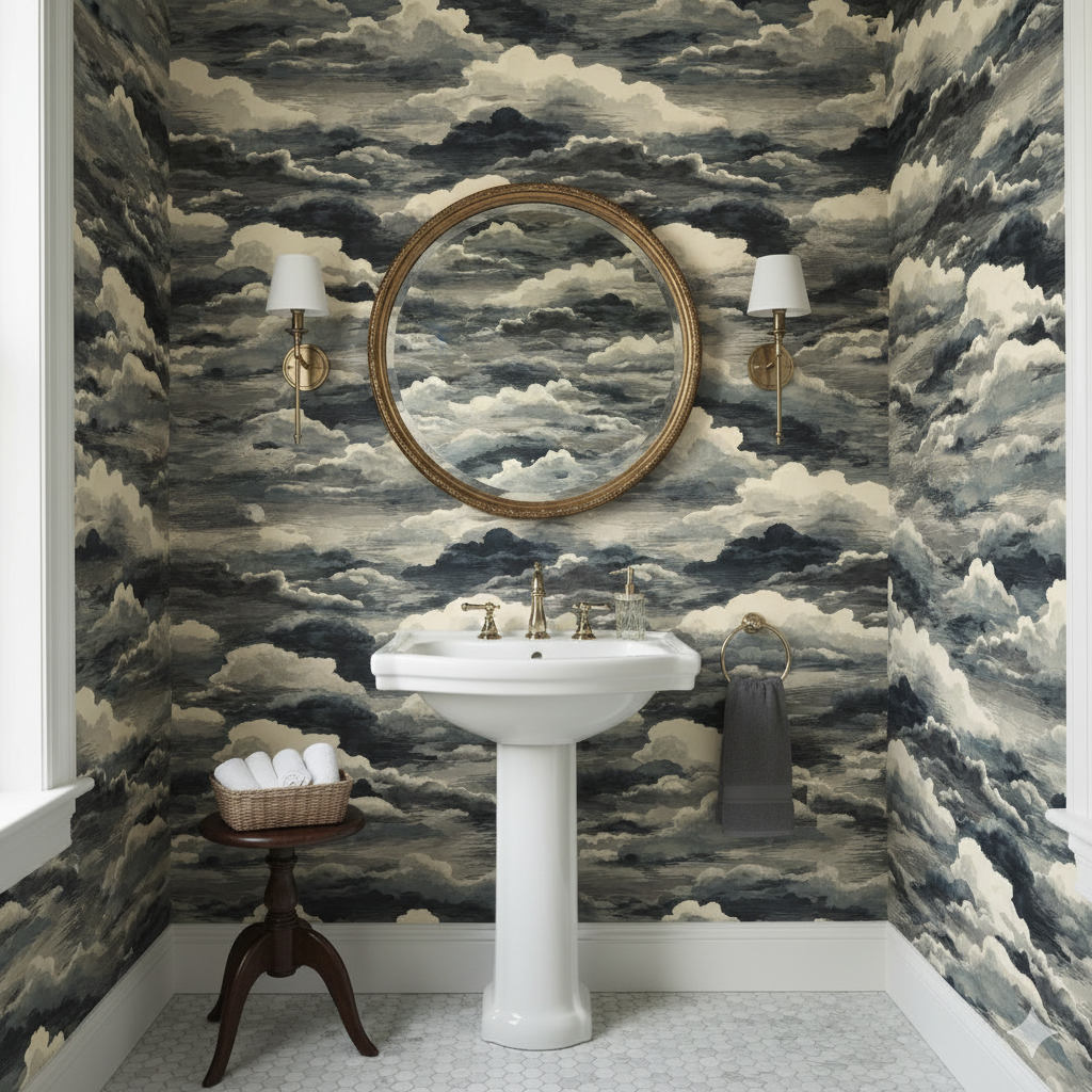 Moody layers of watercolor clouds drift across the canvas in gradients of charcoal, slate, and pale ivory. There’s movement and drama here, yet the palette keeps it sophisticated rather than overwhelming. It evokes both stormy skies and quiet overcast mornings, making it a versatile choice for creating atmosphere. In a living room, it adds gravitas; in a bedroom, it brings depth and intimacy. The monochromatic scheme pairs easily with both minimalist interiors and eclectic mixes of texture.