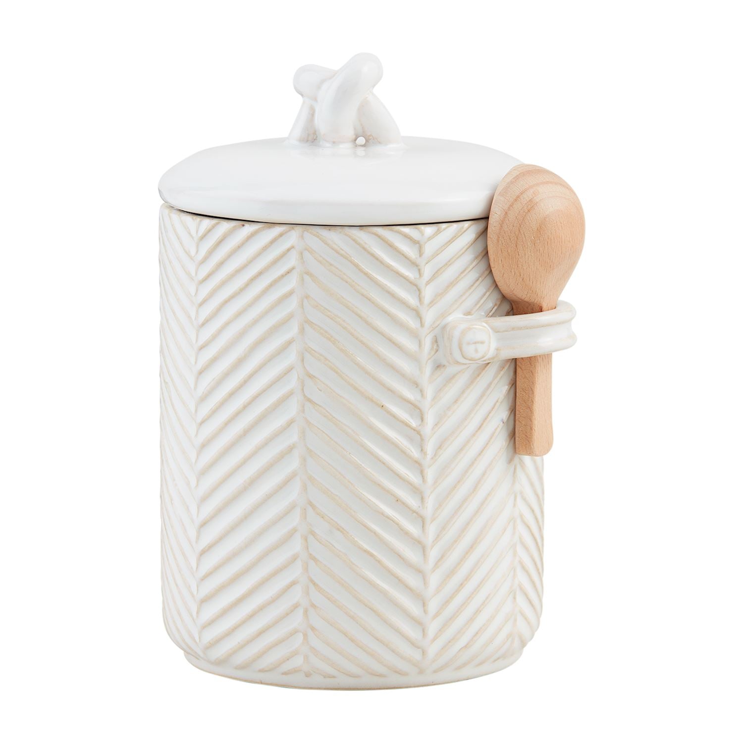 2-piece set. Reactive glazed stoneware coffee canister. Comes with wooden spoon.