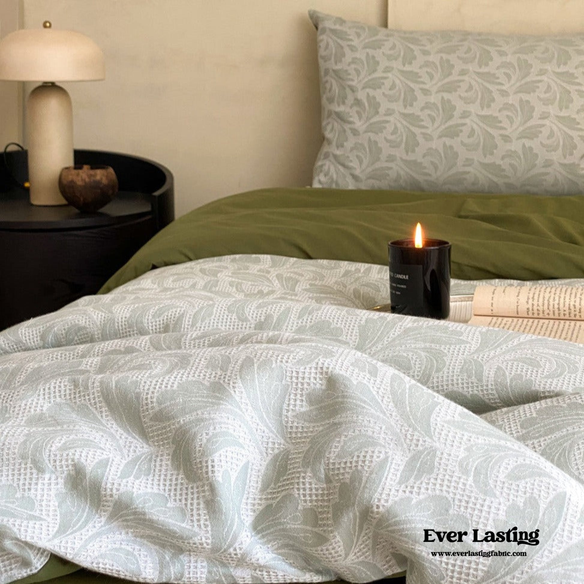 Explore our exquisite Forrest Waffle Bedding Set, designed to bring nature-inspired luxury to your bedroom. Crafted with meticulous attention to detail, this set features a beautiful waffle weave pattern in a forest green and fall leaf color. Experience the ultimate blend of comfort and style, creating a cozy sanctuary that embraces the beauty of nature. Indulge in a restful sleep surrounded by the captivating charm of our Forrest Waffle Bedding Set. Elevate your bedding game and embrace the serenity of the forest today!