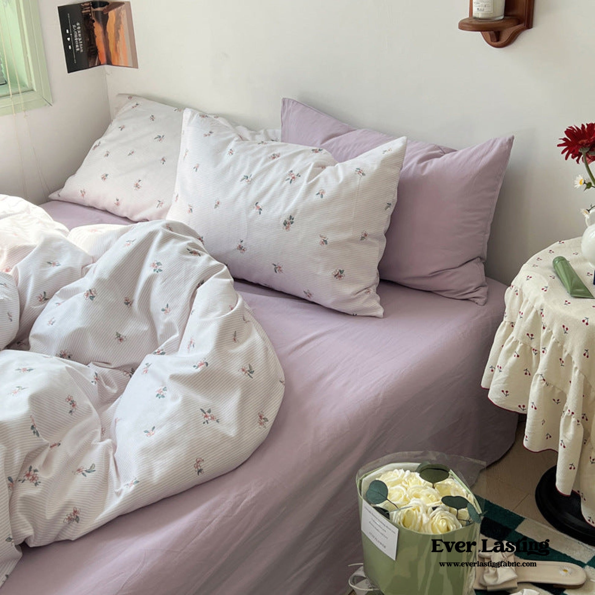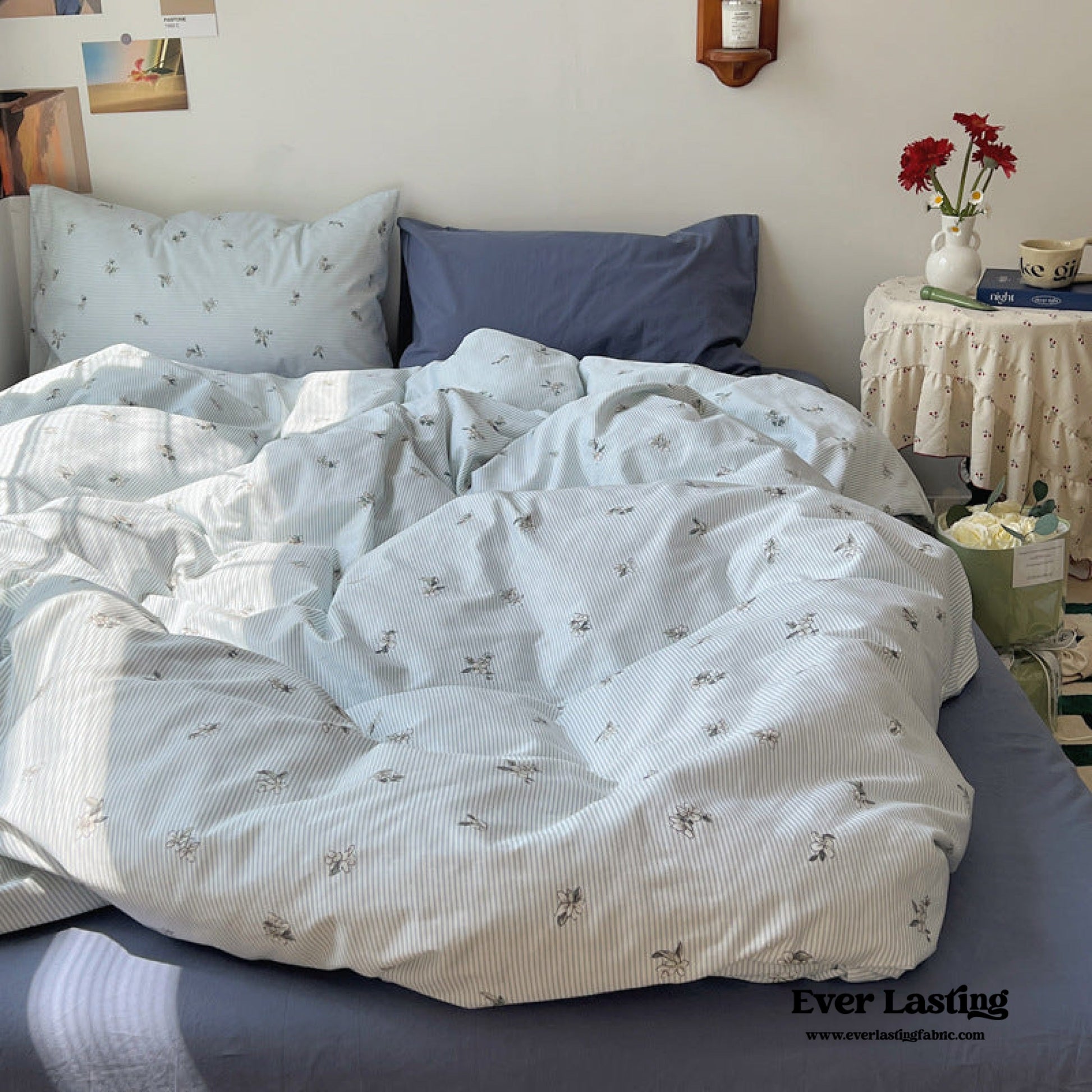 Elevate your sleep space with our - Thin Stripe Floral Bedding Set. The delicate balance of thin stripes and intricate floral patterns creates an inviting blend of modern and classic. Each duvet cover comes with four corner ties and a hidden zipper to keep your duvet insert in place all night long! Immerse yourself in comfort and style, as this set transforms your bedroom into a sanctuary that embraces both simplicity and elegance.