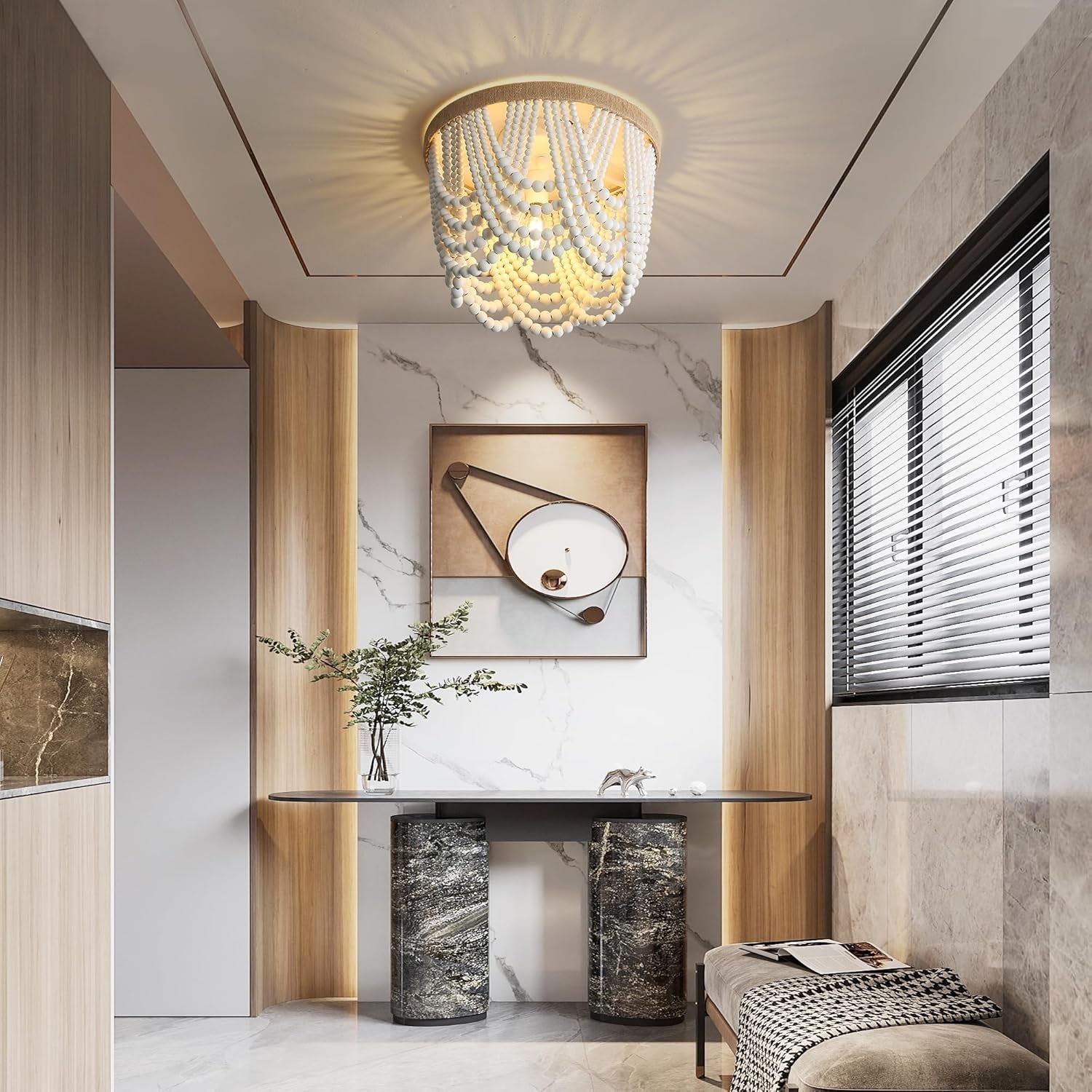 Bohemia Wood Beaded Pendant Lights for Living room | Hallway Light Fixtures Ceiling | Bohomia Lighting for Bedroom |